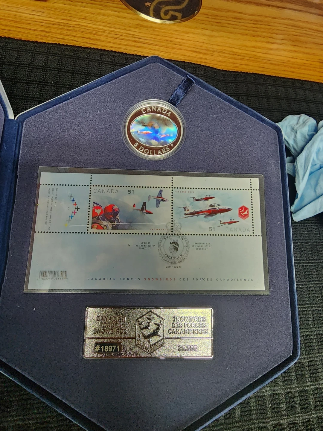 Selling a Canadian Forces Snowbirds Stamp and Coin Set! It includes a stamp and a silver coin. Comes in a commemorative box with coa. $150 obo