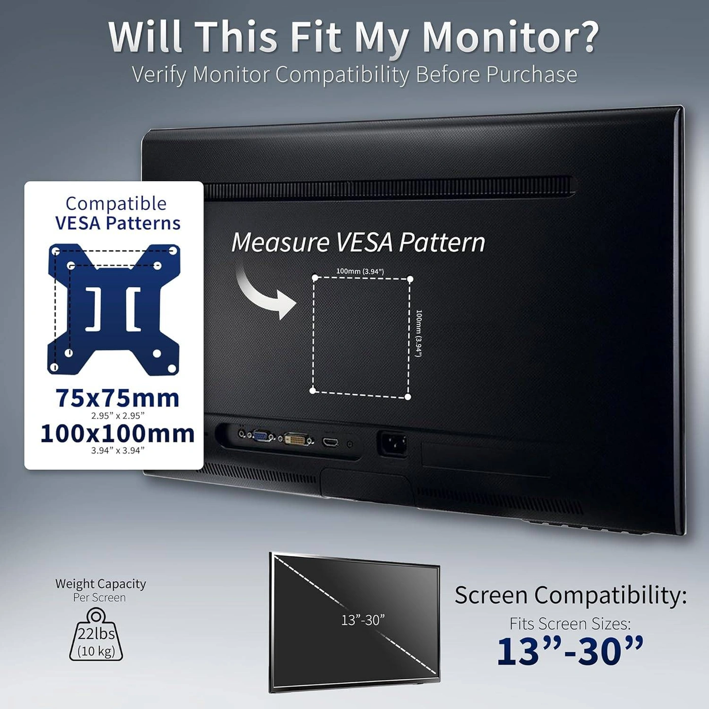 - Compatible VESA patterns: 75x75mm and 100x100mm