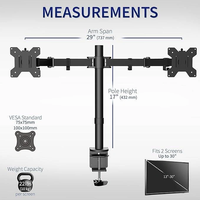New VIVO Dual Monitor Desk Mount - 13" to 30"