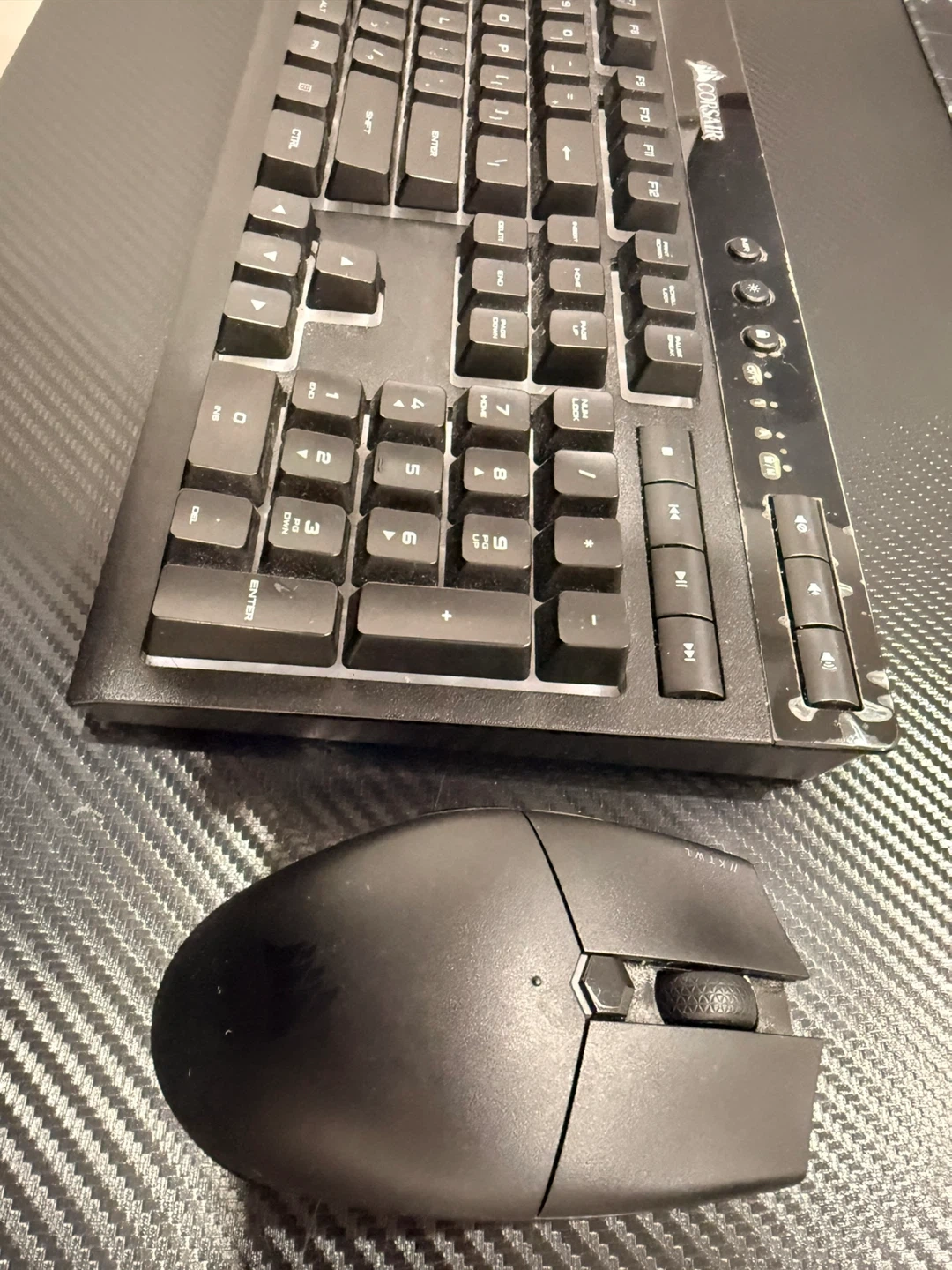 Selling a Corsair K67 RGB Wireless Keyboard and Mouse combo. The keyboard model is RGP0065. It has some signs of use, but is still fully functional. Great for gaming or everyday use!