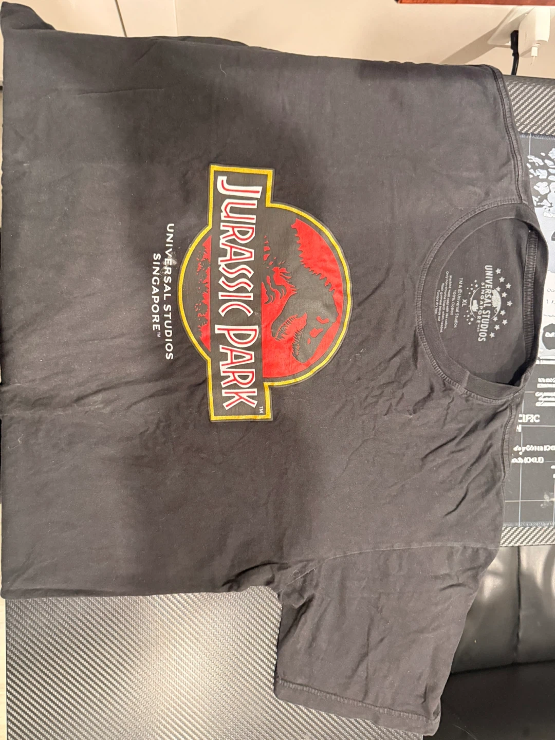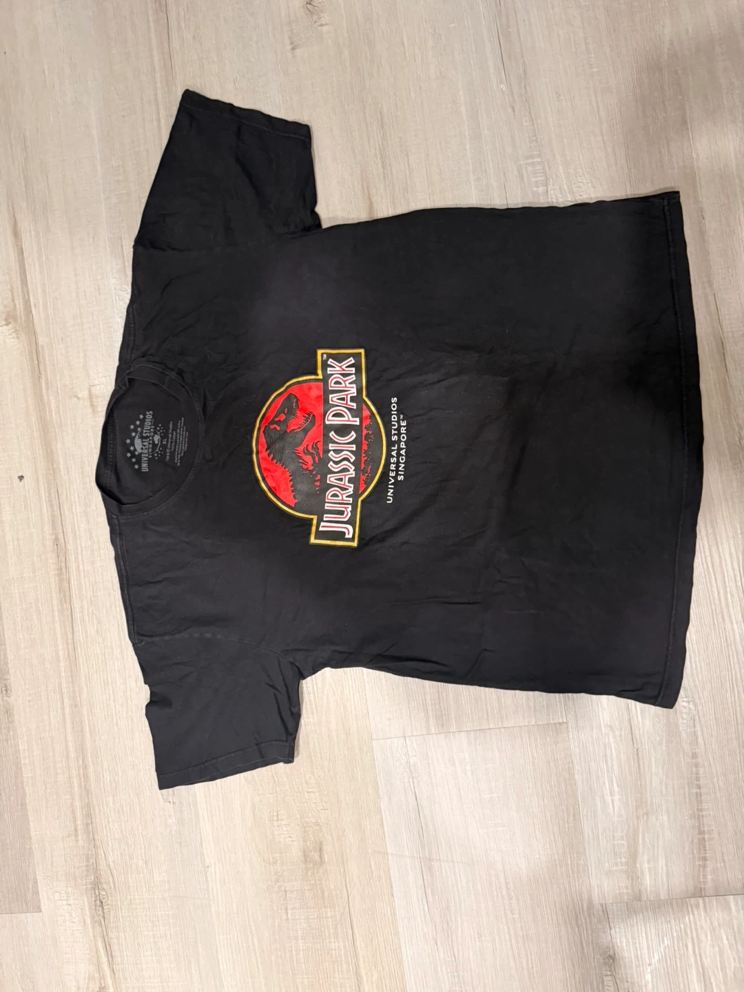 Selling a Universal Studios Singapore Jurassic Park T-shirt in size XL. It's in good condition and made of 100% cotton. Perfect for any Jurassic Park fan!