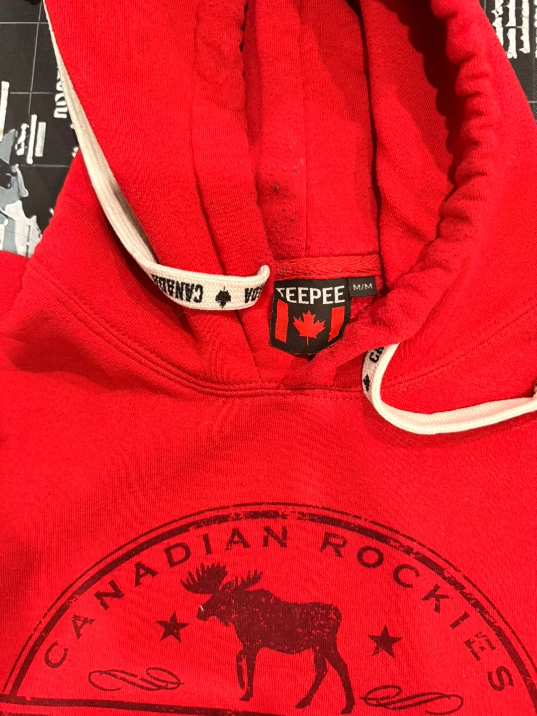 I'm selling a Keepee hoodie featuring a Banff Canada design. It's red and size medium. Great for showing off your Canadian pride!