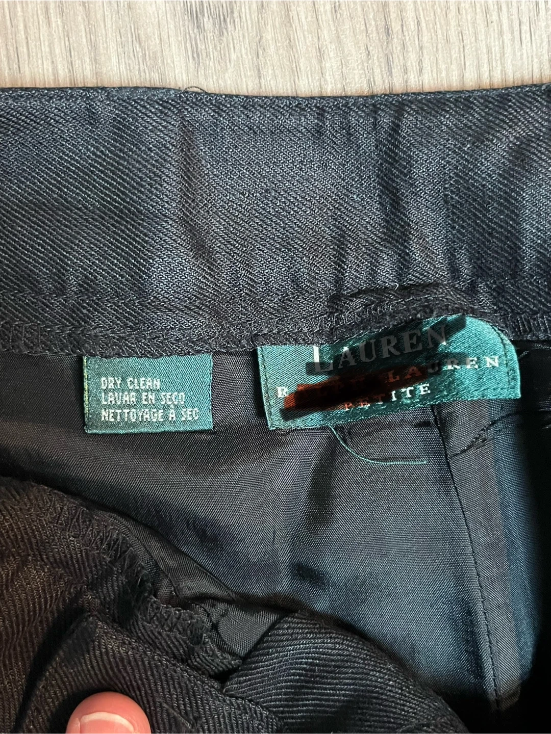 Selling a pair of Ralph Lauren petite black pants in size 6. The waist measures approximately 26-27 inches, and the inseam is about 30 inches. These pants are dry clean only!
