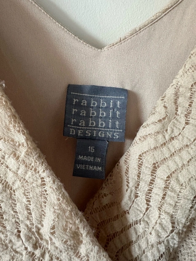This is a Rabbit Rabbit Rabbit Designs size 16 dress, featuring a flattering v-neckline and a stylish hi-low hem. This garment has only been worn a handful of times and is in excellent condition, ready to elevate your wardrobe. Specifications: * Brand: Rabbit Rabbit Rabbit Designs * Size: 16 * Style: Hi-Low While I can't guarantee it'll bring you luck, finding this ad means you're in for a treat! Just a heads-up: if the ad's still up, it's still up for grabs! From smoke and pet free home. $40 Pick up downtown