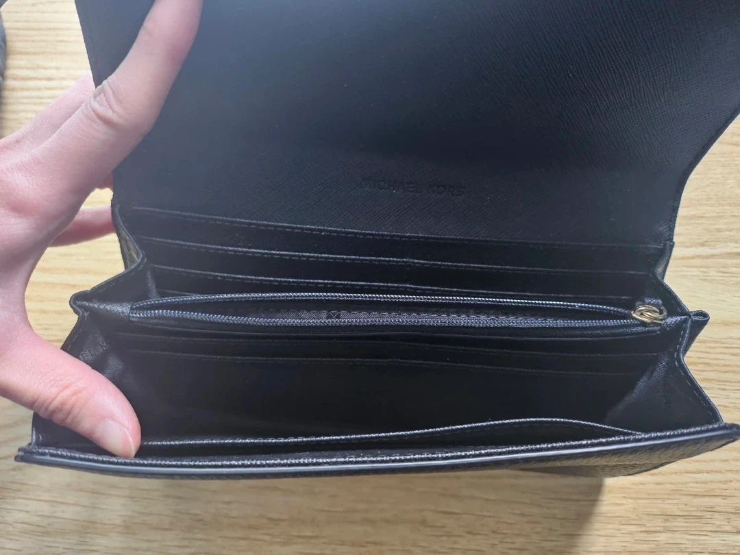 Selling a Michael Kors black leather wallet. It's in great condition and has lots of space for cards and cash. Perfect for everyday use!