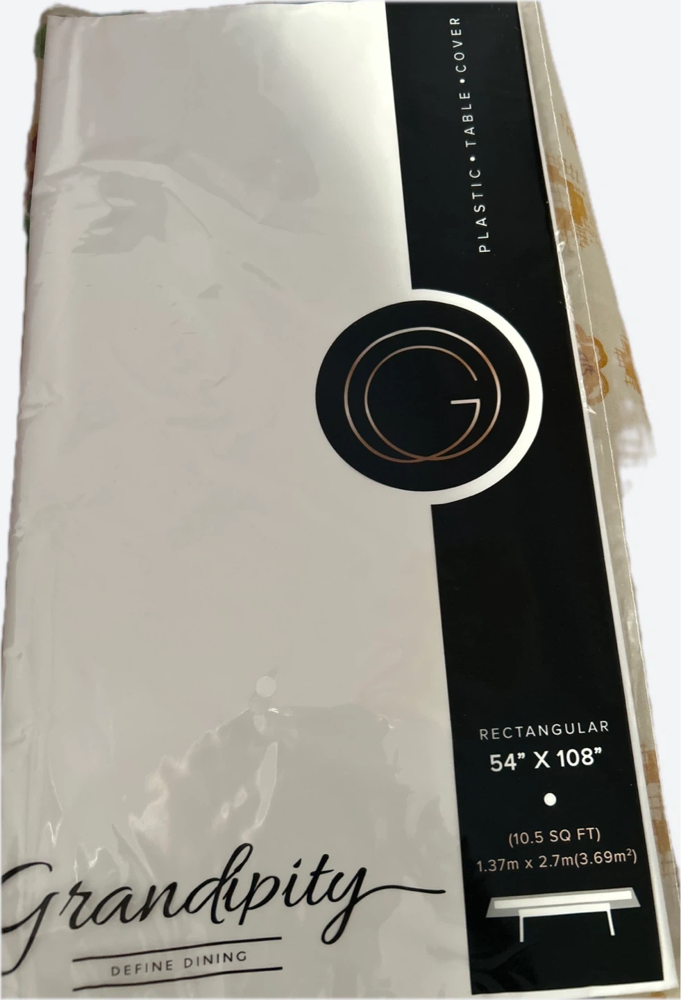 I'm selling a rectangular plastic table cover. It is 54" x 108" in size. This table cover is perfect for defining your dining space and protecting your table!