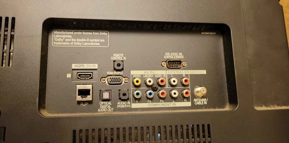 A USB port available that can contain photos and music (we never used), 2 HDMI and other connectors (see photo).