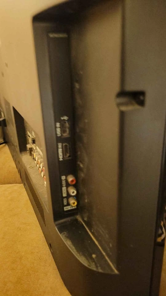 Used (not smart) 32 in TV with power cord, HDMI cable and a remote. Sound, resolution and brightness is OK (see video).