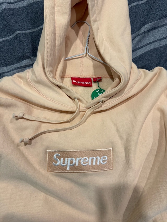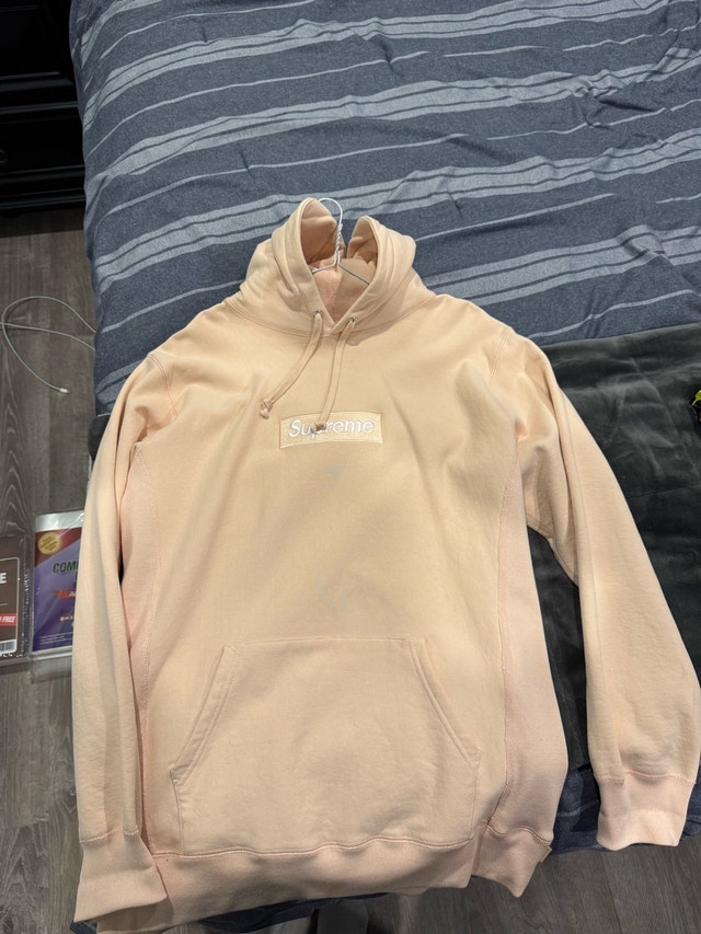 Brand new supreme box logo hoodie peach in size xl with stock x verified tag Asking 1k or best offer thanks