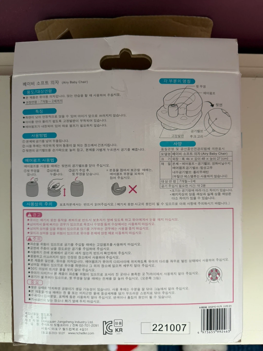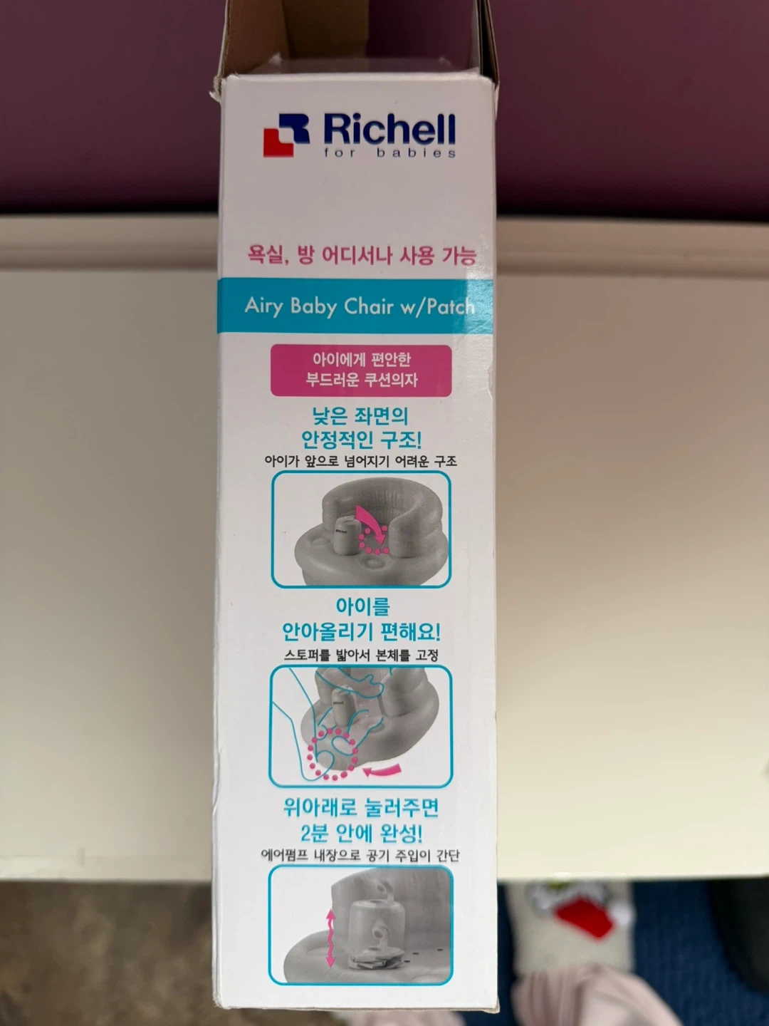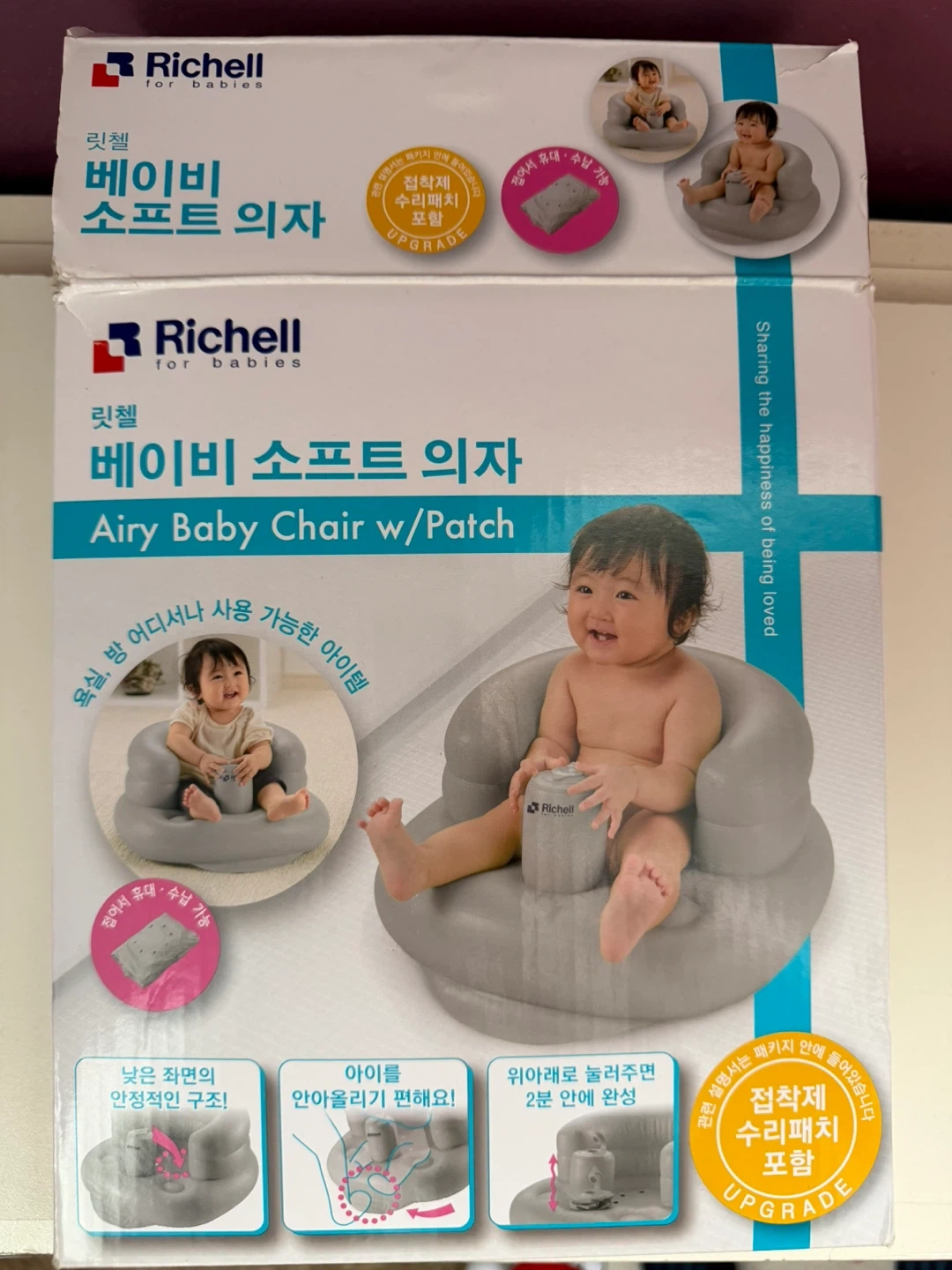 Selling a gently used Richell inflatable baby chair. It's in great condition and perfect for helping your little one sit up and play safely. It's easy to inflate and deflate, making it great for travel or storage!