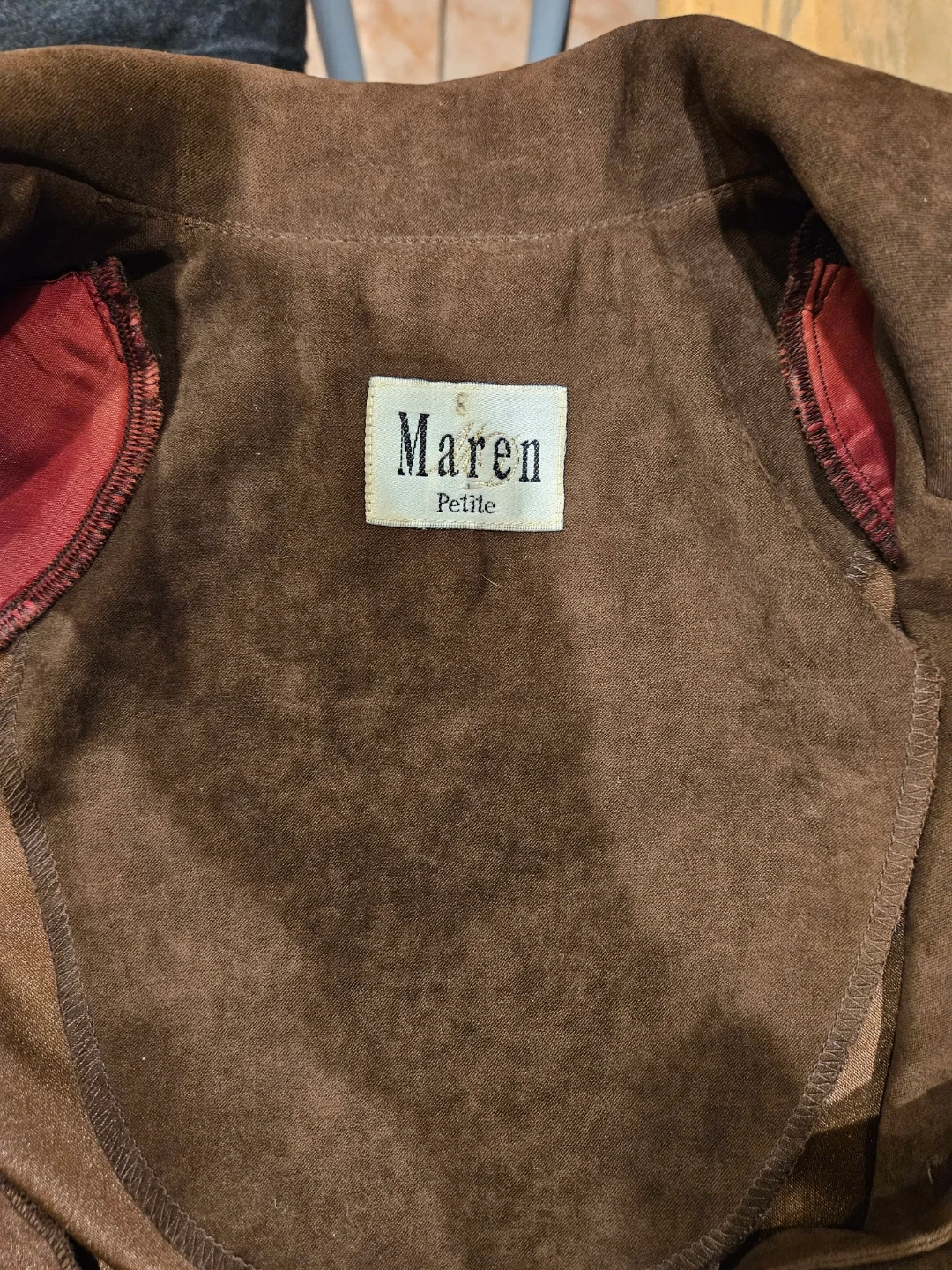 Selling a gently used Maren Petite blazer in a beautiful brown color. It's a size 8 and perfect for adding a touch of sophistication to any outfit. The blazer is made of a soft, comfortable material and features a classic design with button closures and front pockets. It's in great condition and ready for a new home!