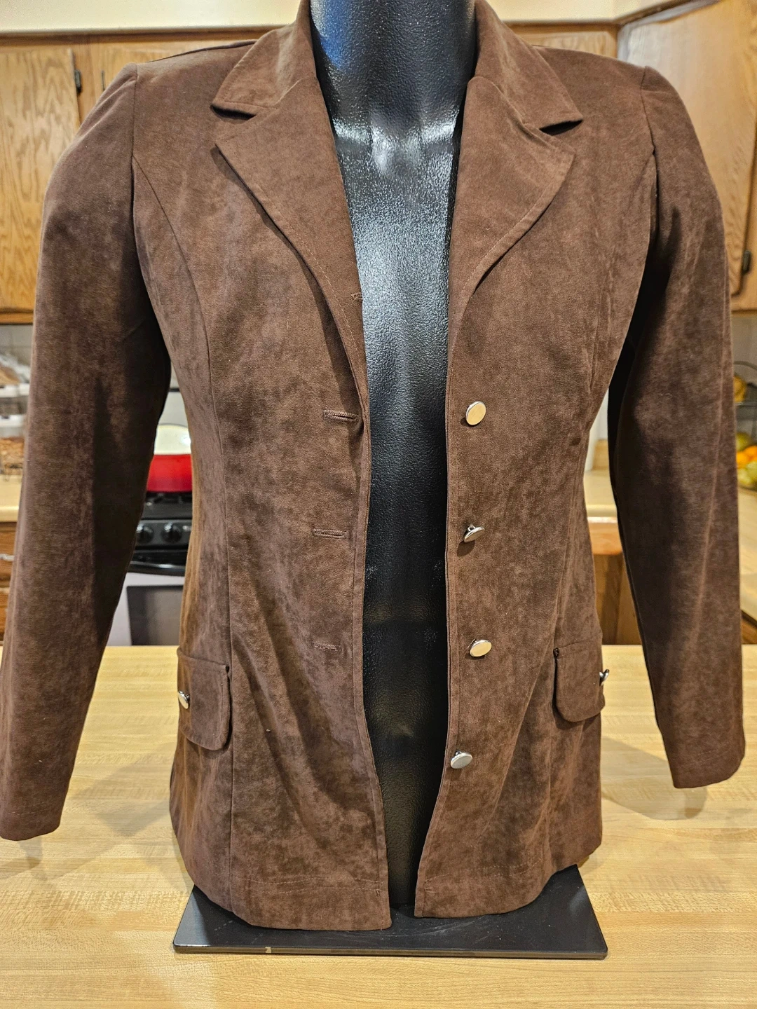 Selling a gently used Maren Petite blazer in a beautiful brown color. It's a size 8 and perfect for adding a touch of sophistication to any outfit. The blazer is made of a soft, comfortable material and features a classic design with button closures and front pockets. It's in great condition and ready for a new home!