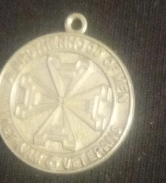 Selling a Brotherhood of Men Catholic War Veterans Medal. It features a distinctive design and appears to be in good condition. Great for collectors or those interested in military memorabilia silver
