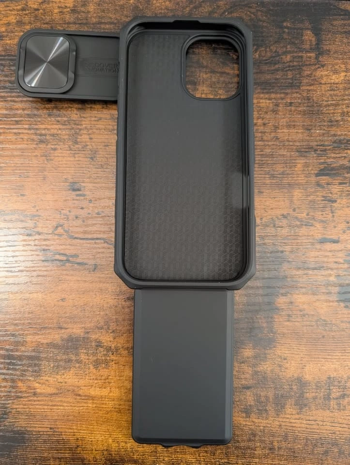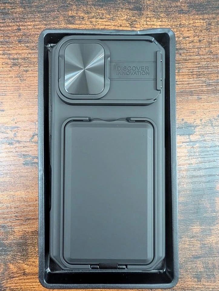 Rugged protective iPhone 17 Pro Max Wallet Case, Black. Can hold between 2 - 4 cards. Camera cover can be used as a stand.