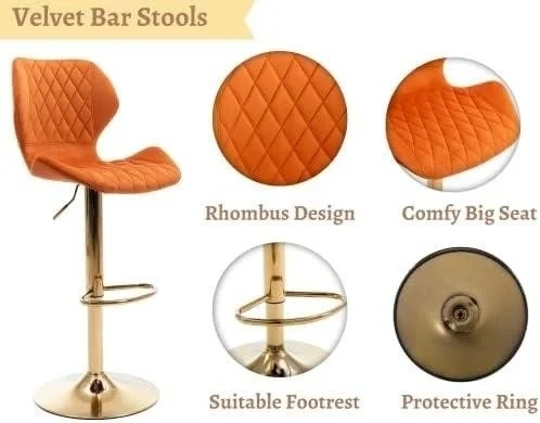 The bar stools are designed with exquisite diamond-shaped lines, adding a stylish touch to your space. The seat surface is made of high-quality velvet, which soft and comfortable. Whether sitting at a table or gathering around a family bar, our barstools will be the perfect companion.
