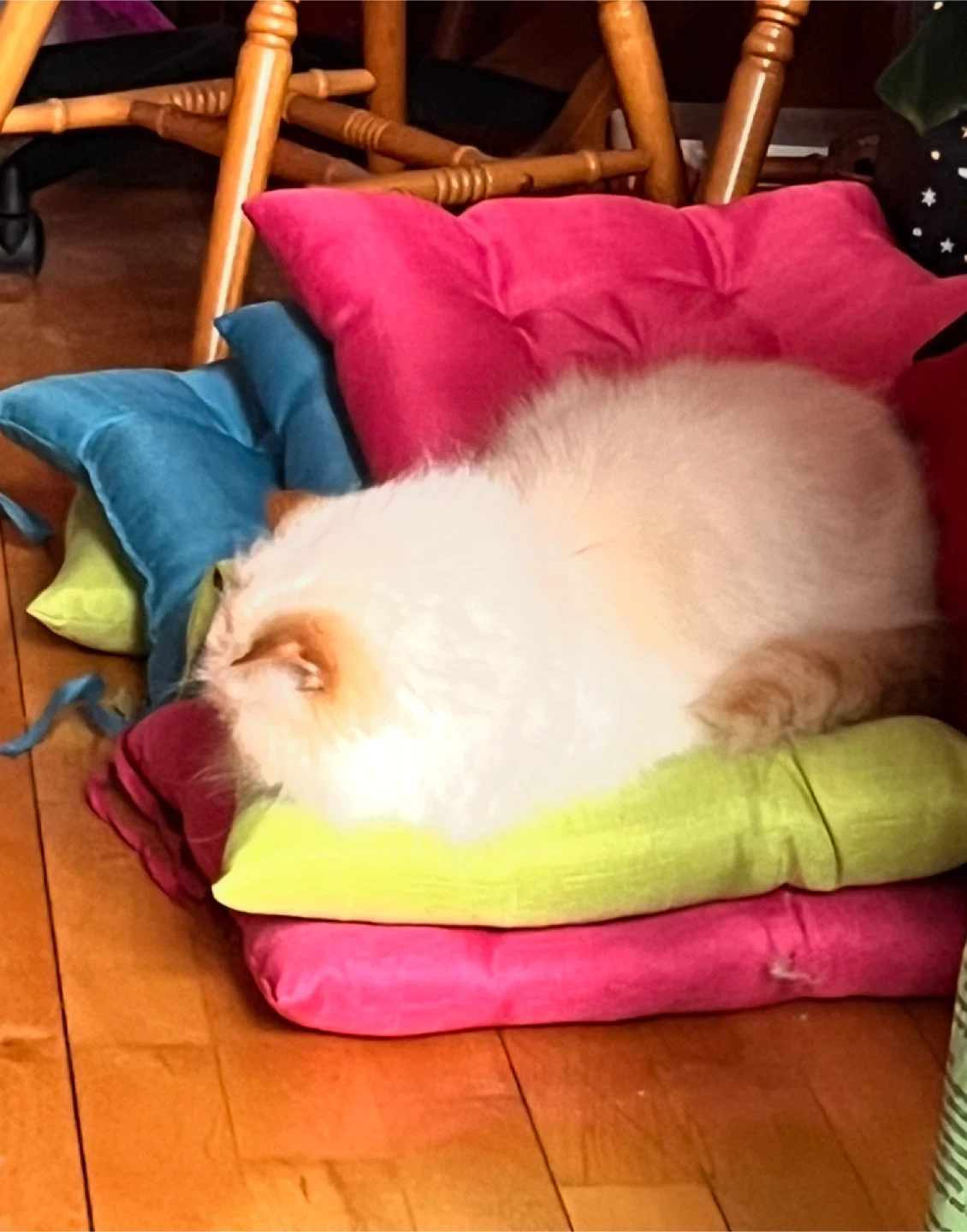 I have a few colourful chair cushions for sale! They are in good condition and would be perfect for adding some comfort and style to your chairs. Available in pink, green, and blue.