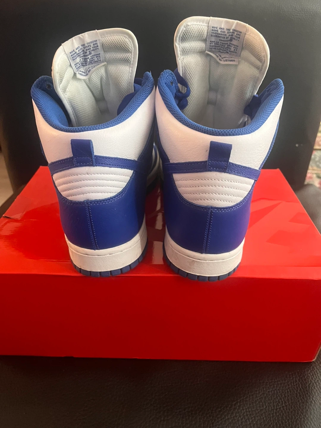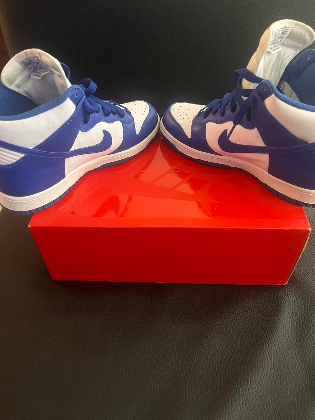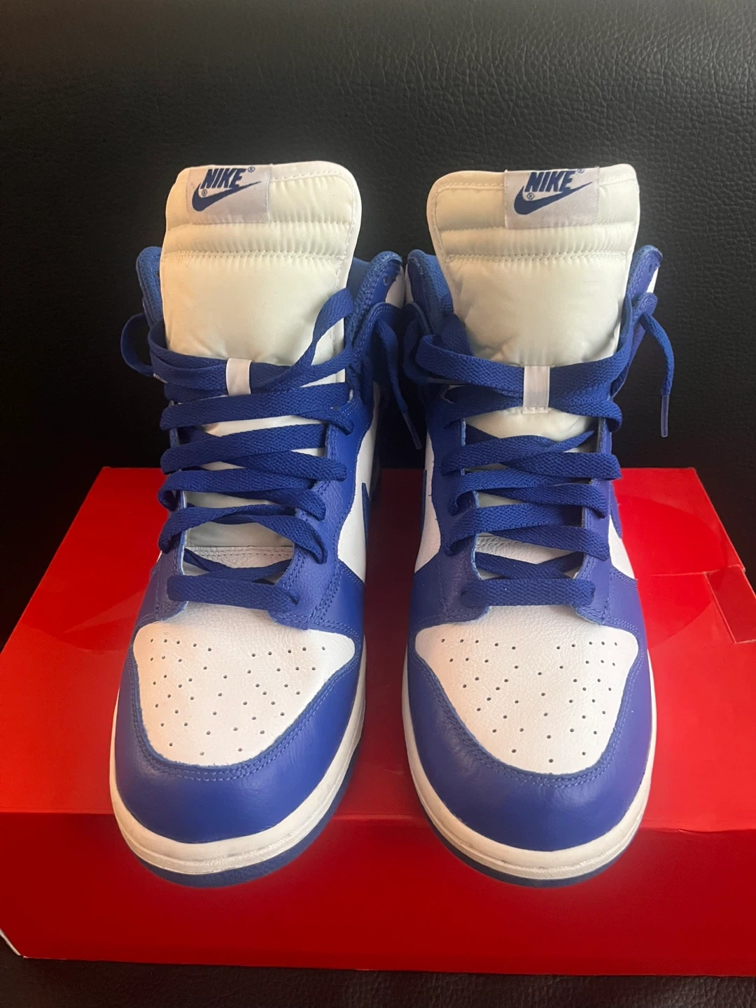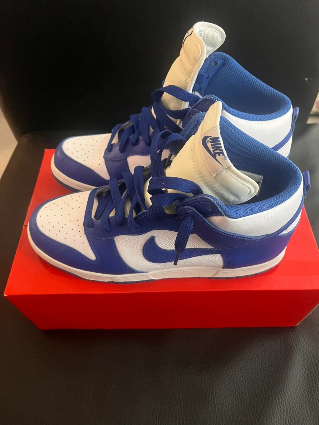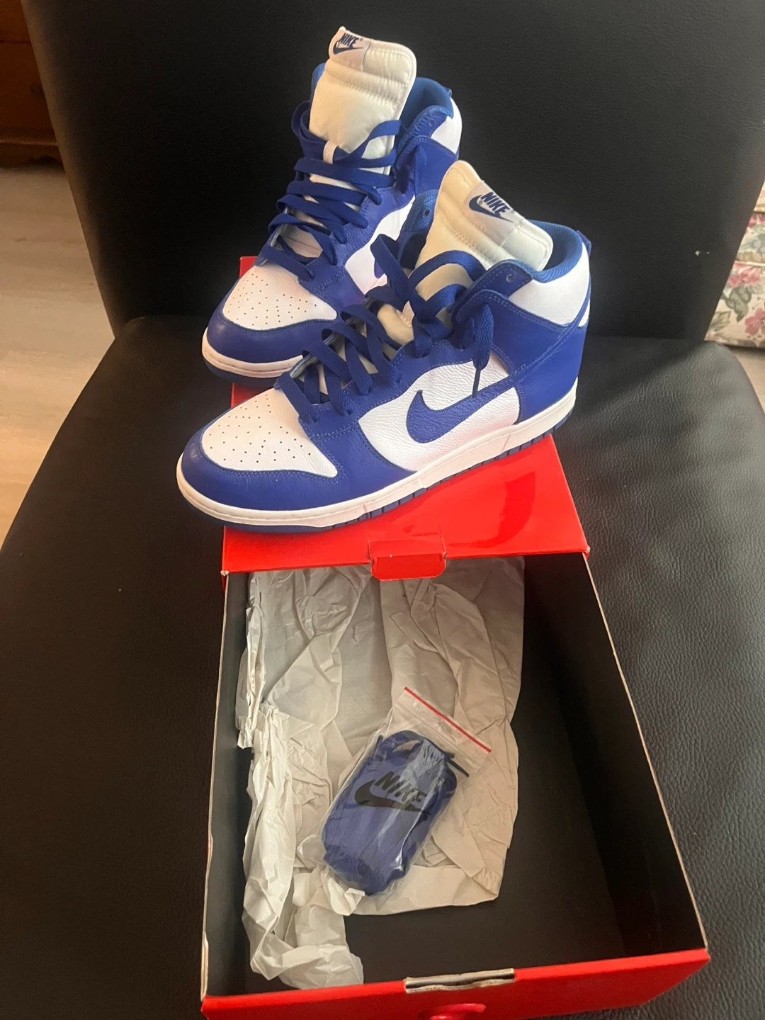 Selling a pair of Nike Dunk High Retro sneakers in the White/Racer Blue colourway. They come with the original box and an extra set of laces. These are a classic and stylish choice for everyday wear!