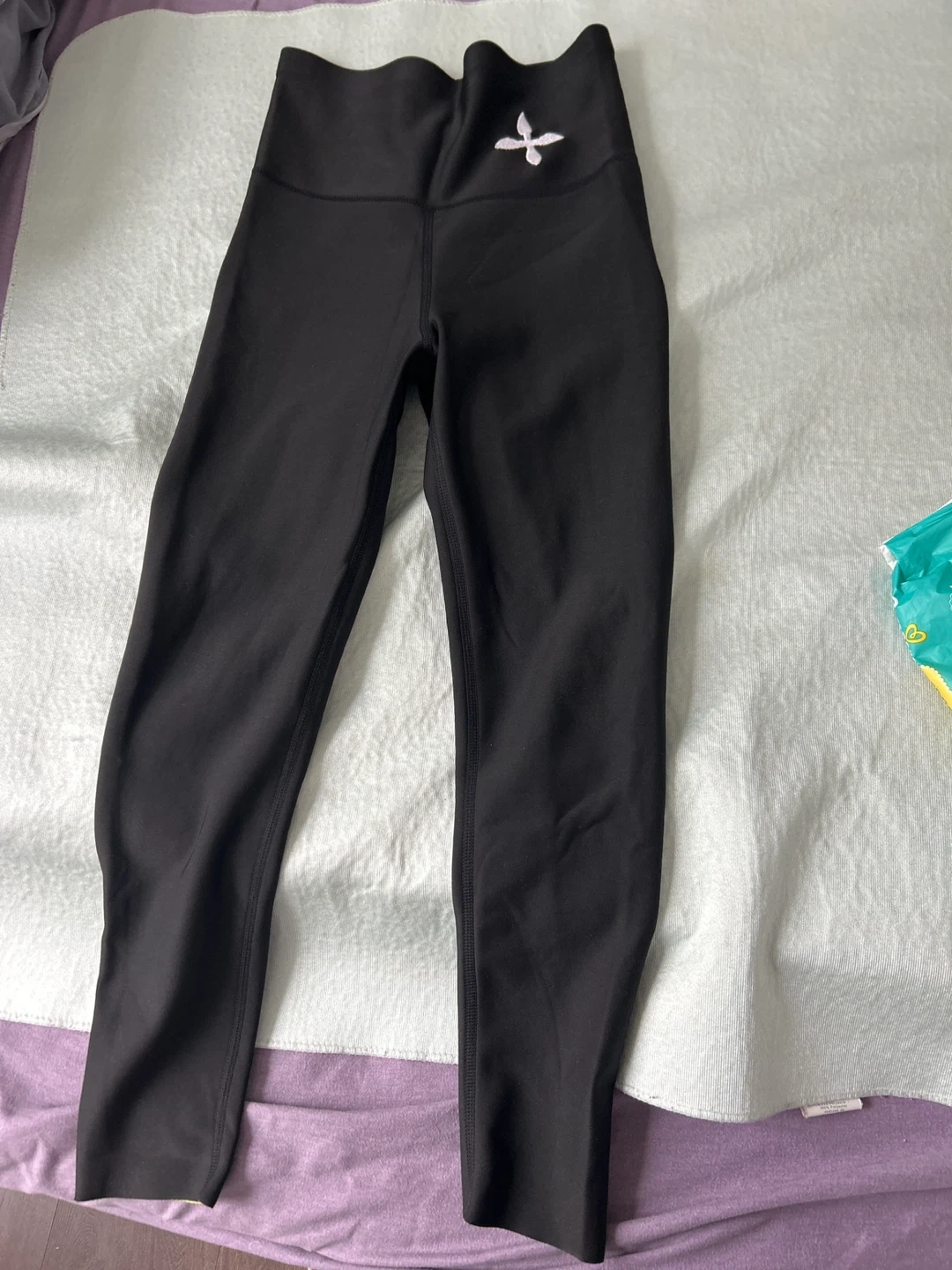 Selling a pair of Ryderwear black leggings. They are in great condition and super comfy! The material is soft and stretchy, perfect for workouts or just lounging around. The Ryderwear logo is on the front. They are a size small.