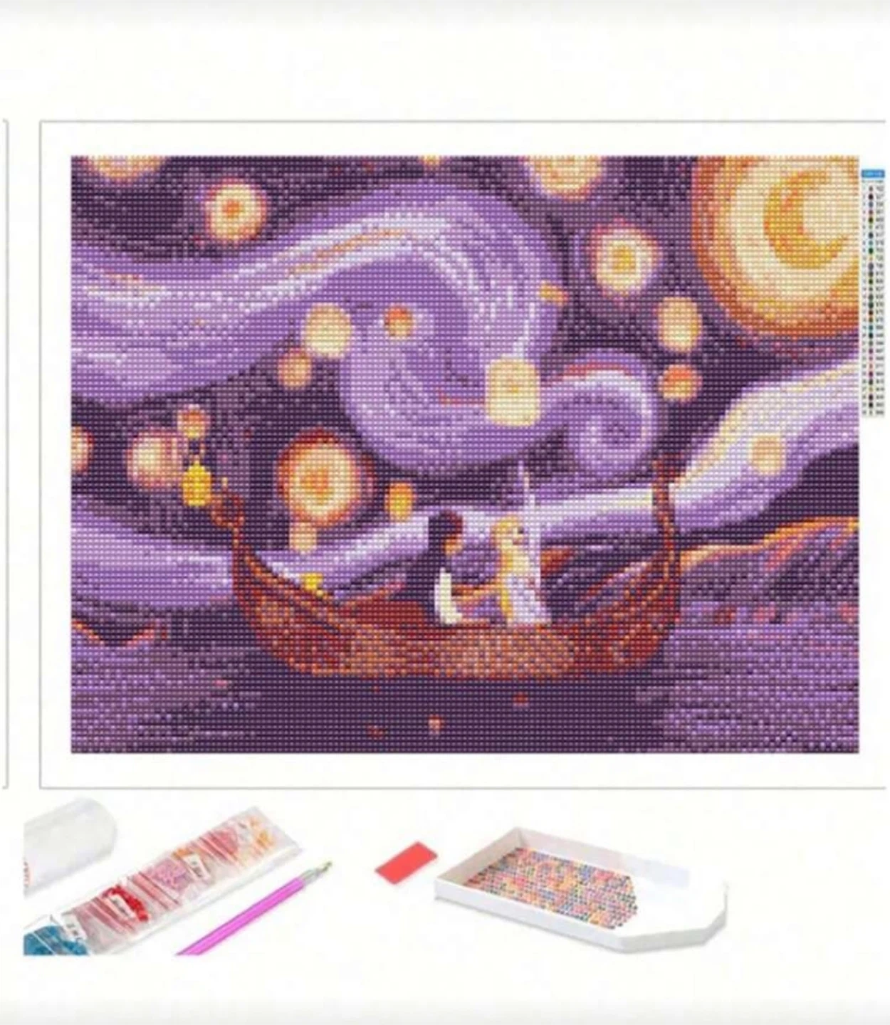Get creative with this diamond painting kit! It includes everything you need to create a beautiful piece of art. The canvas size is 30x40cm (11.8in x 15.7in). Perfect for a relaxing and engaging hobby. Was gifted to me so it’s brand new in the packaging.