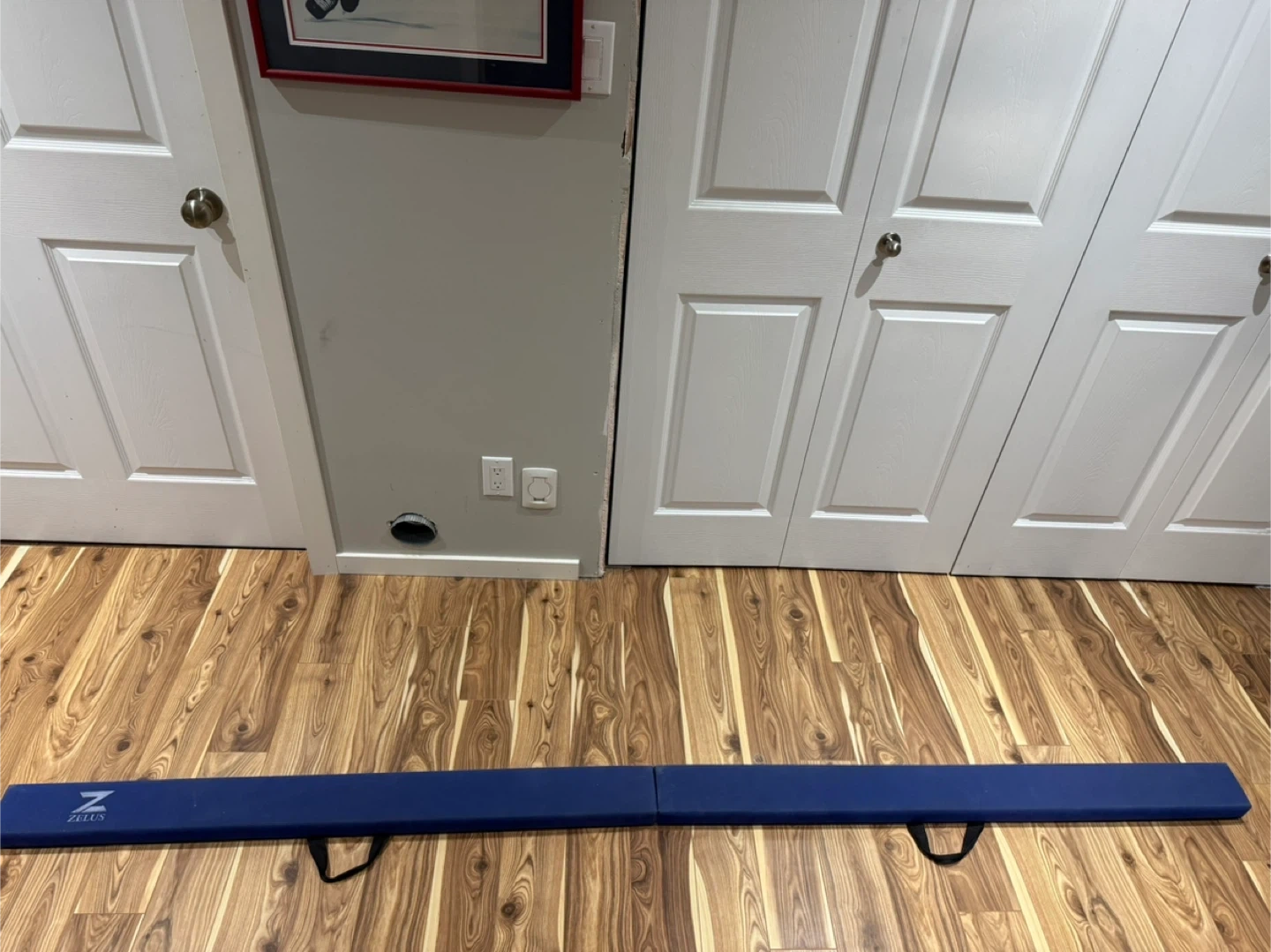 I’m selling a blue Zelus gymnastics balance beam that my daughter used to love. She’s grown out of it now, but it’s still in great shape! It folds in half with handles, so it’s easy to carry and store. It’s perfect for practicing your gymnastics skills at home!