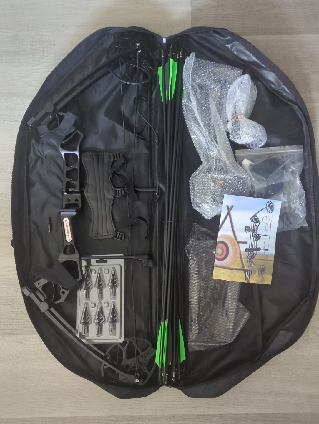 Selling a complete compound bow set. It comes with everything you need to get started, including arrows, a target, and various accessories. The set is in great condition and ready for its next owner!