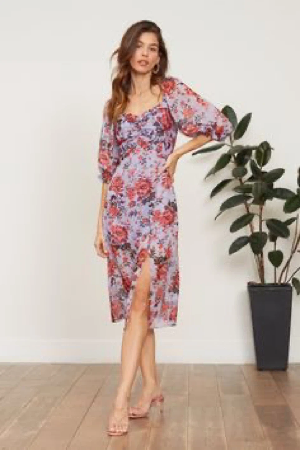 Selling a lovely Lucy Paris floral dress in size medium! It features a beautiful floral pattern on a light purple background. Perfect for a summer day or a special occasion!