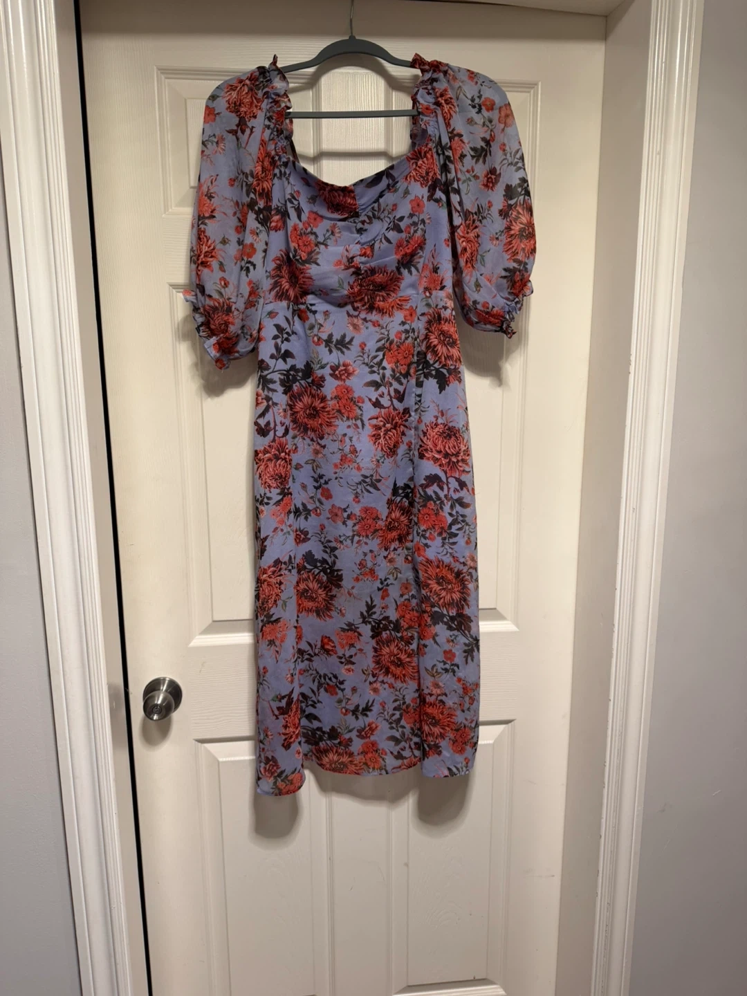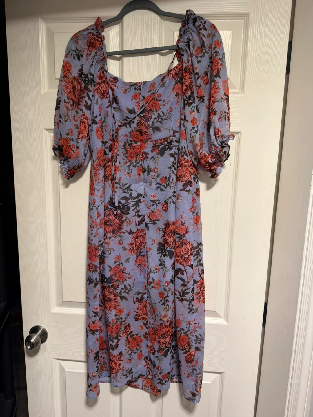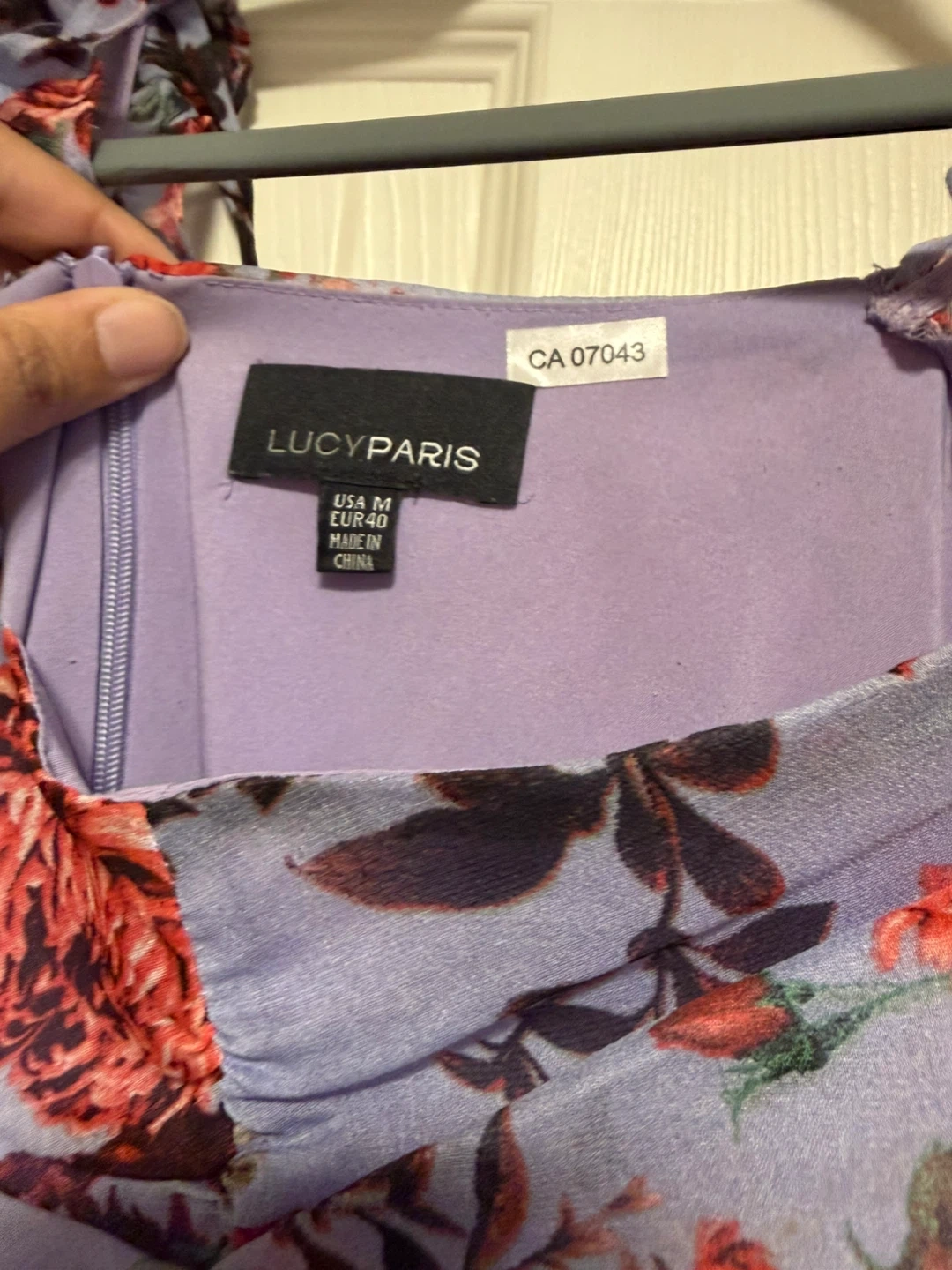 Selling a lovely Lucy Paris floral dress in size medium! It features a beautiful floral pattern on a light purple background. Perfect for a summer day or a special occasion!