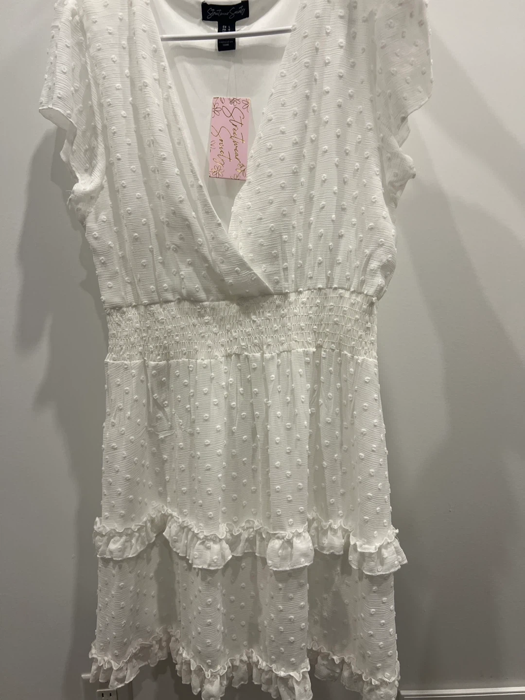 Selling a brand new cute white dress from Urban Planet! It's a size L and features a lovely dotted pattern throughout. Perfect for a sunny day out or a casual event
