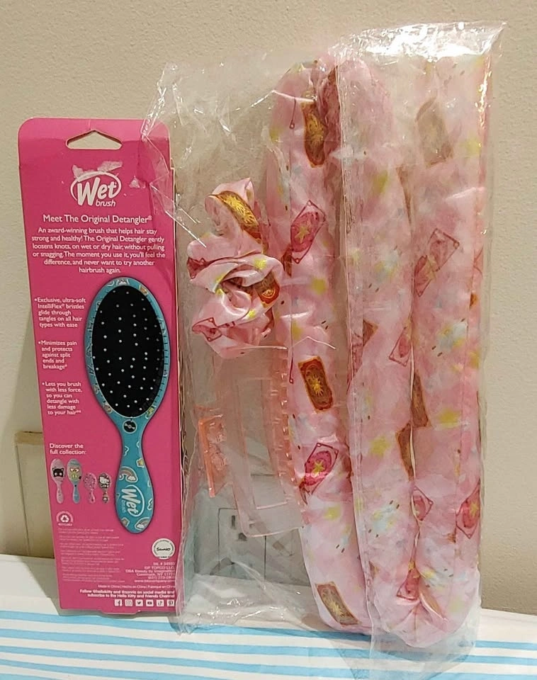 - 4 pcs Sakura Cardcaptor Hair Curling Set including 2 scrunchies, 1 hair roller, and 1 hair clip