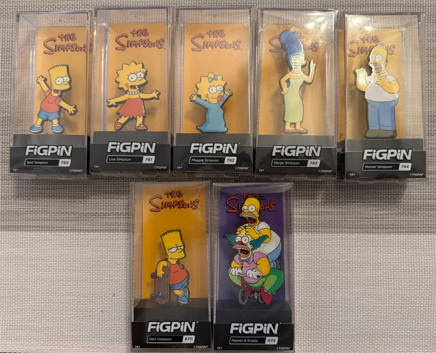 Selling a collection of The Simpsons FiGPiNs! Each pin features a different character: Bart, Lisa, Maggie, Marge, Homer, and Homer & Krusty. They are all in their original packaging and ready for a new home!