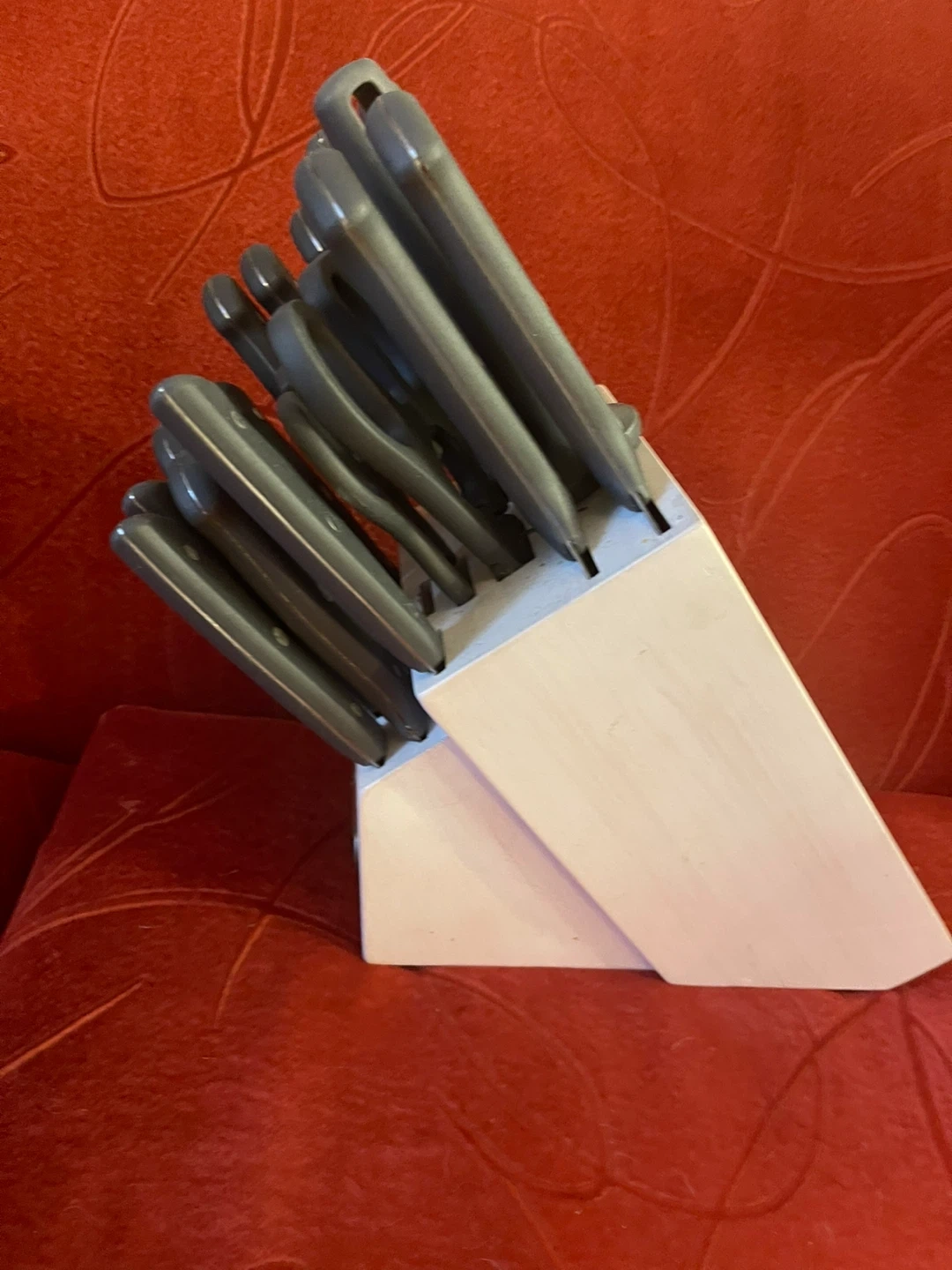 Selling a Farberware 20 piece knife block set. Missing small paring knife. It's a great addition to any kitchen, keeping your knives organized and within easy reach. The set includes a variety of knives for different cutting tasks.