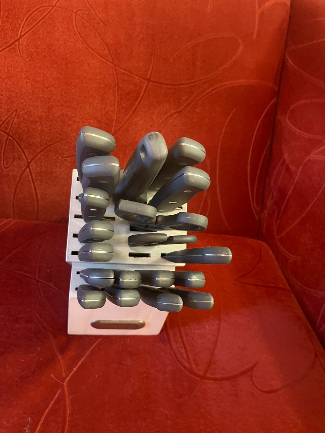 Selling a Farberware 20 piece knife block set. Missing small paring knife. It's a great addition to any kitchen, keeping your knives organized and within easy reach. The set includes a variety of knives for different cutting tasks.