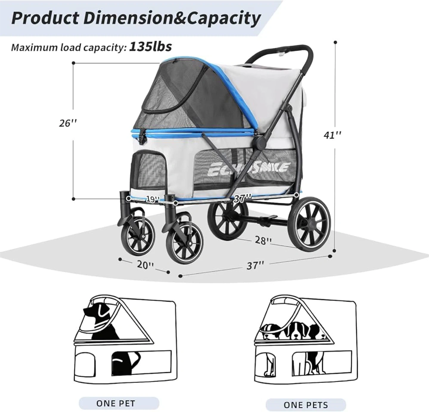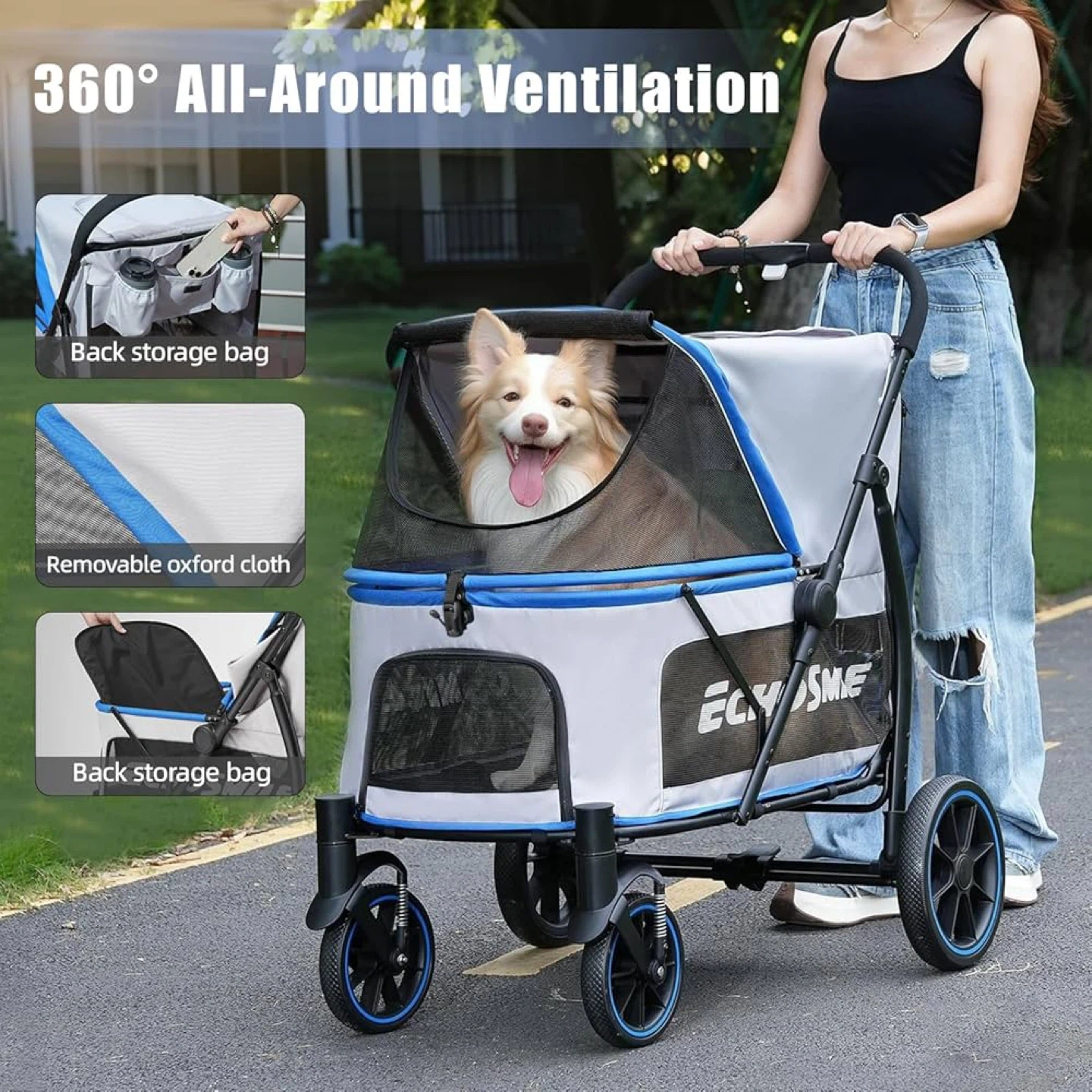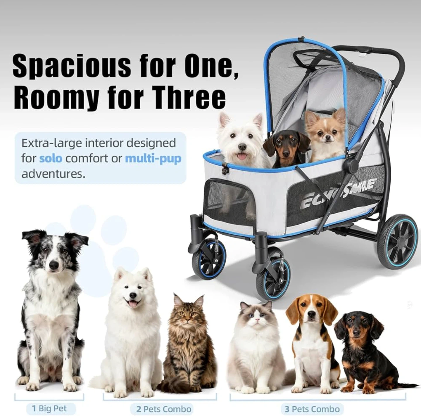 Ecysmile Pet Stroller - Spacious & Roomy!