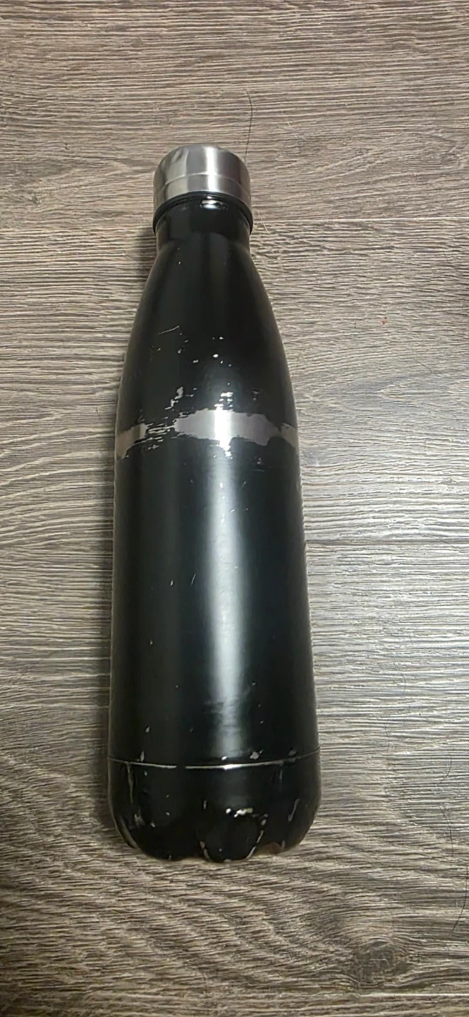 Selling a black water bottle. It has some scratches and signs of wear as shown in the pictures.