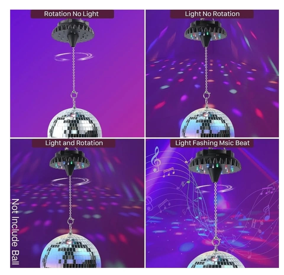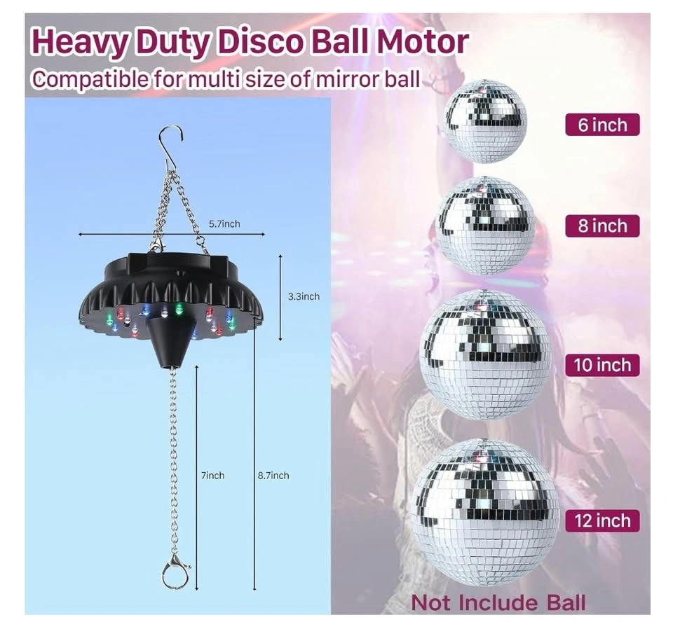 Works with 4″, 6″, 8″ & 12″ disco balls