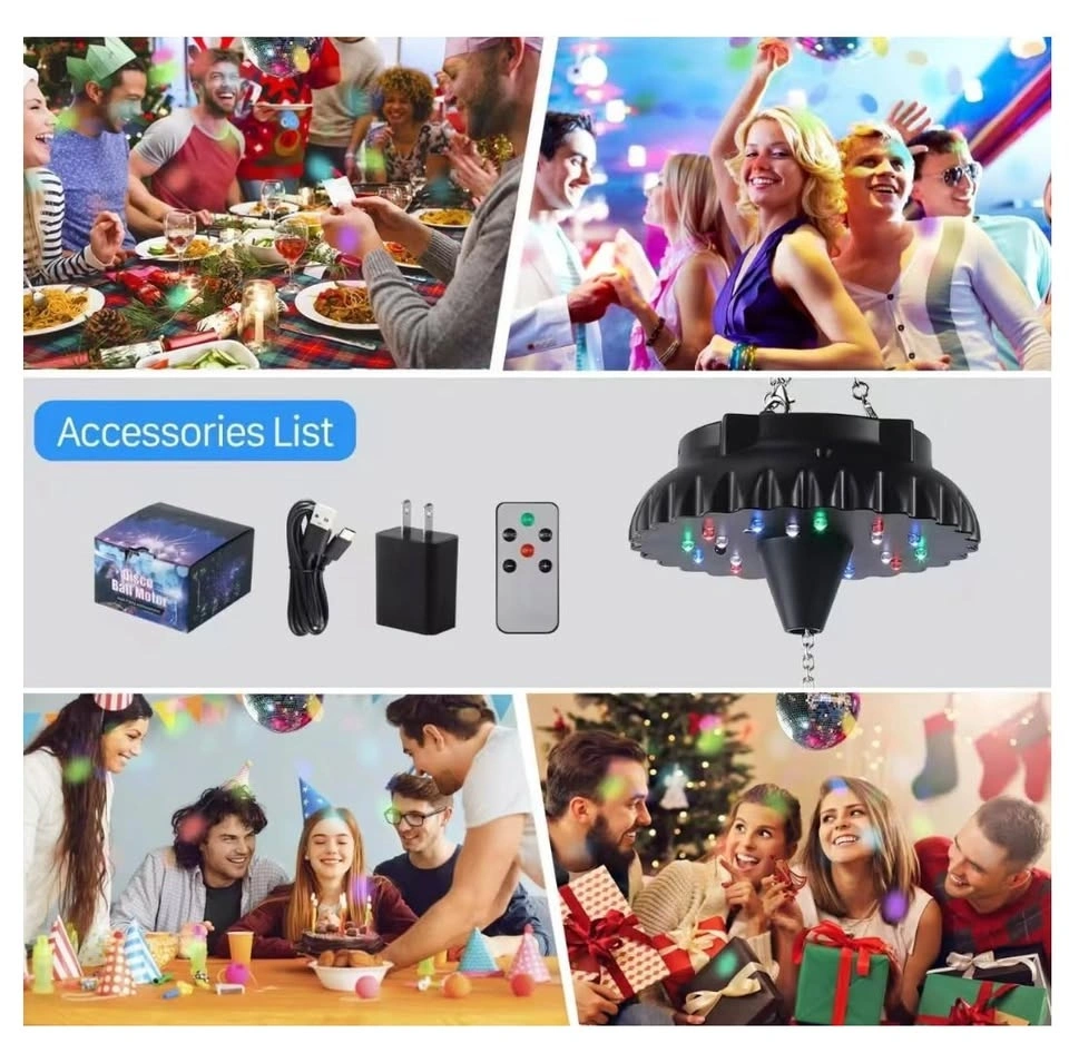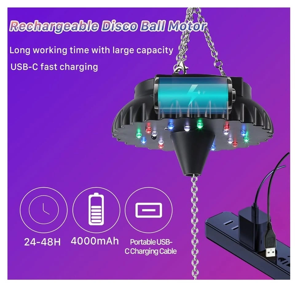Rechargeable rotating disco ball motor with LED lights