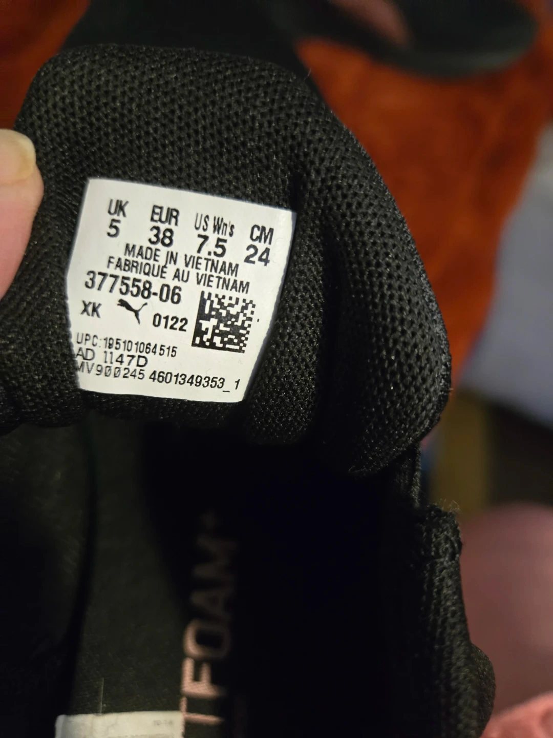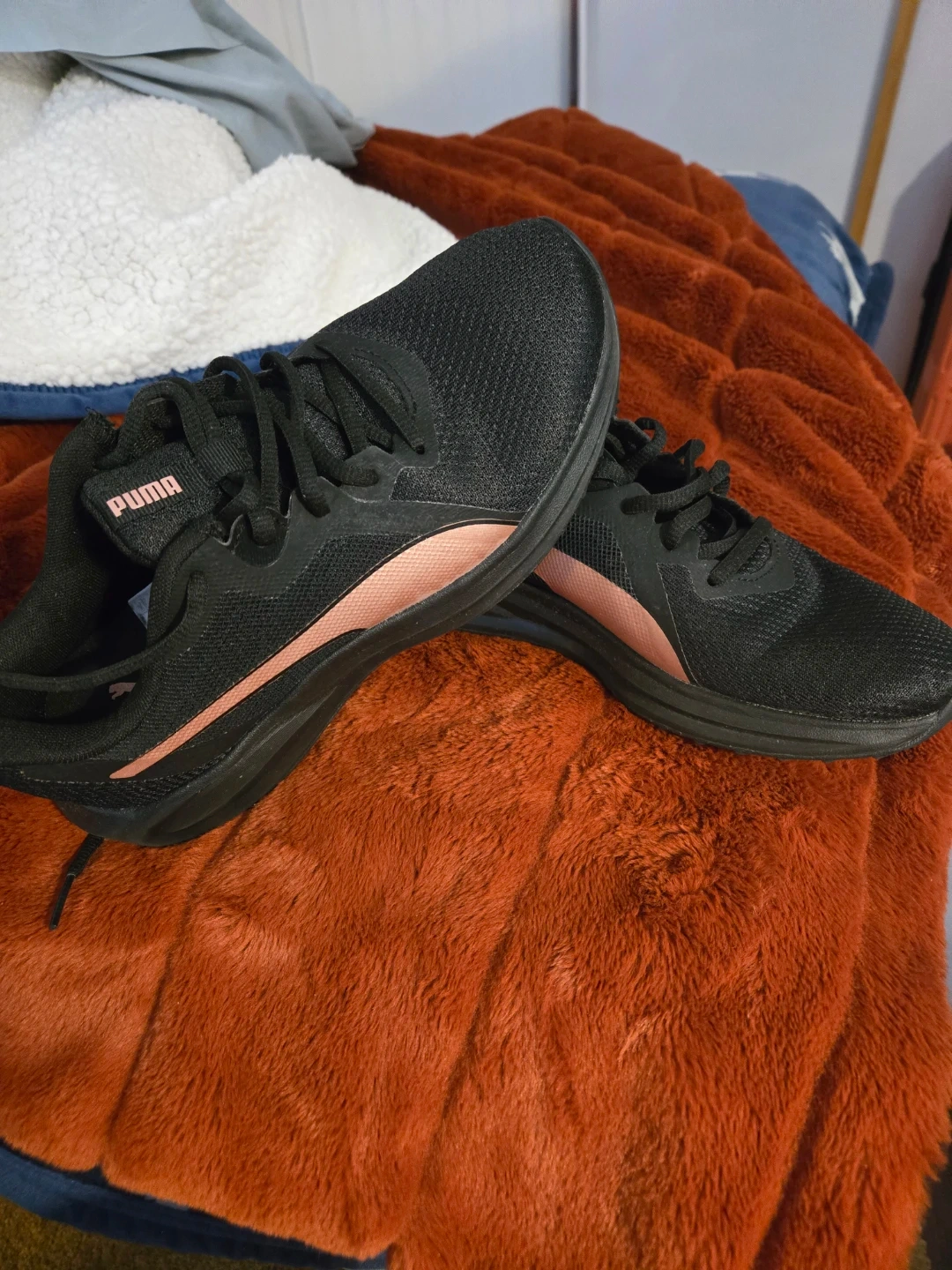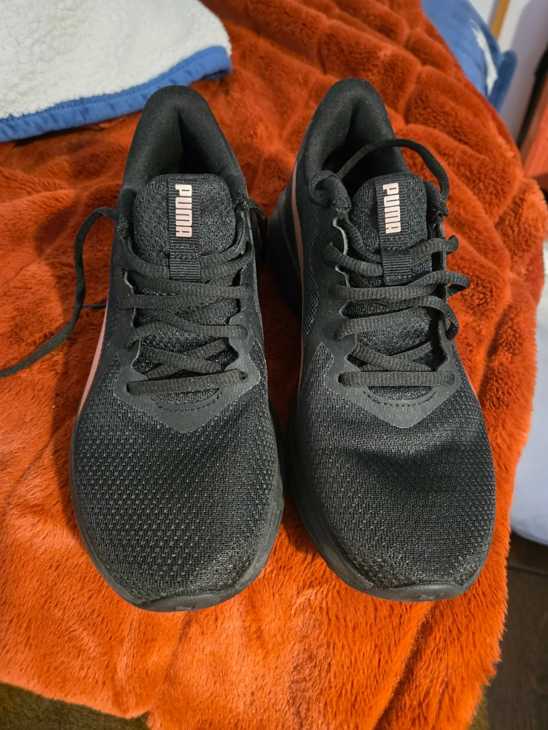 Selling a pair of Puma running shoes in black. They're in great shape and ready for a new owner! They are a women's size 7.5.