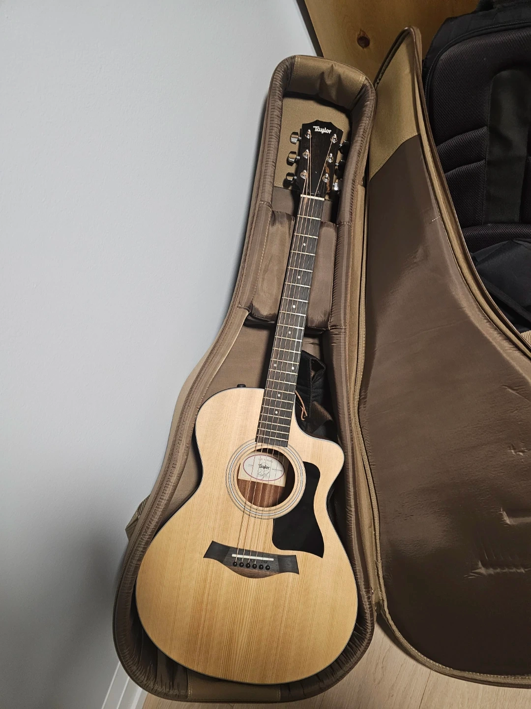 Selling a Taylor 112ce acoustic guitar. It's in great shape and sounds amazing! The guitar comes with its case for easy transport and storage. It's a fantastic instrument for anyone looking to upgrade their sound or start playing