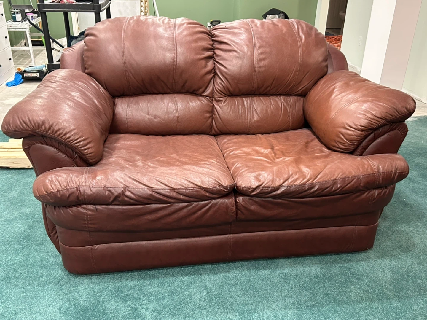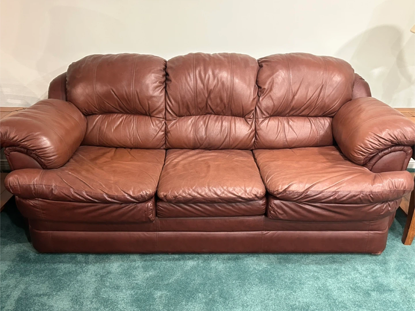 Selling a comfy 3-piece leather sofa set, perfect for a living room or den. Includes a sofa, loveseat, and armchair. The set is in good condition and ready for a new home!