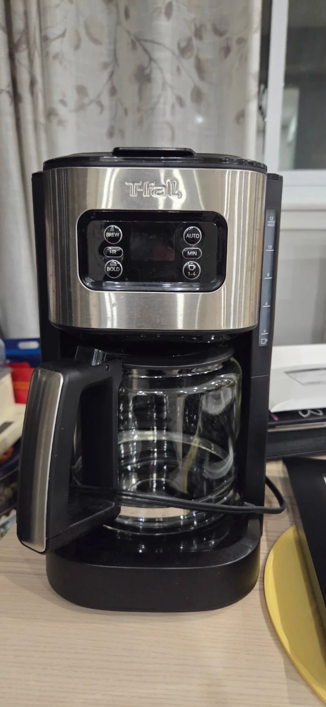 Selling a T-fal coffee maker! It's in great shape and ready to brew your favourite coffee. It features brew, auto, hr, min, bold, and 1-4 cup settings. Perfect for starting your day right!