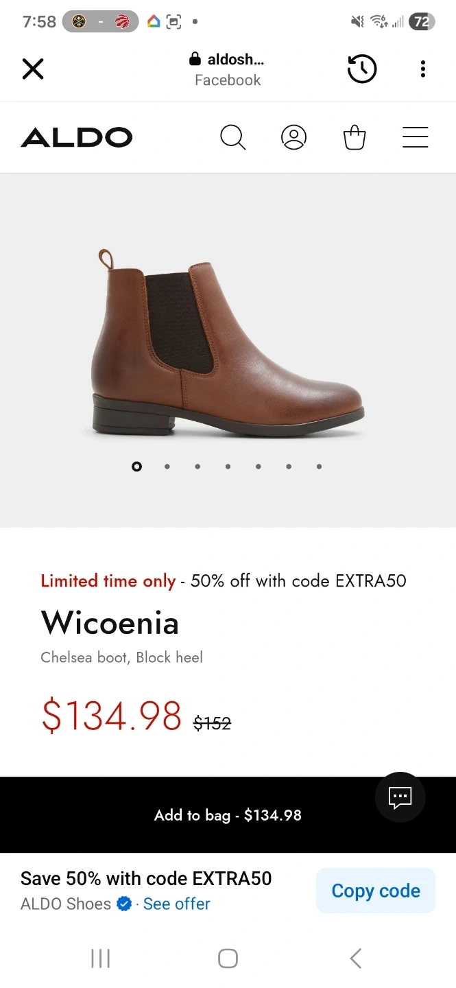 Selling a pair of ALDO Wicoenia Chelsea boots with a block heel. Retails for $134.98 .got few weeks back on full price. Only worn once for few hours .