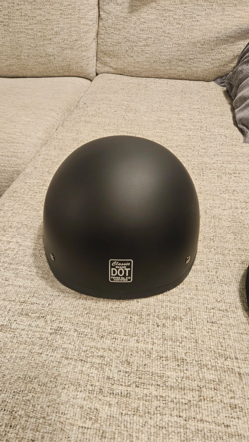 Selling a black Classic DOT motorcycle helmet. Shows some signs of use with some minor scratches, but still in good condition and ready to protect your head on the road! Size small