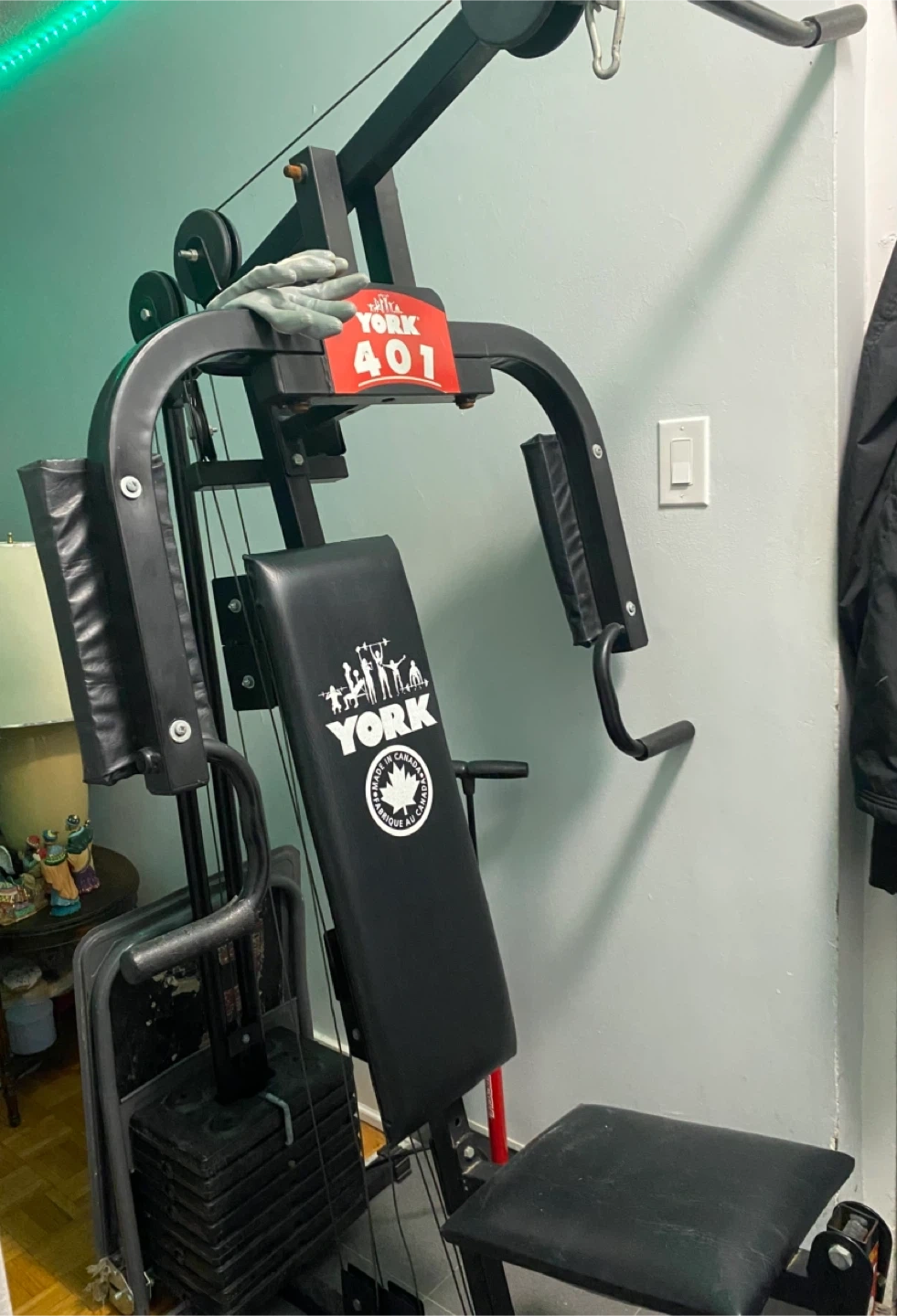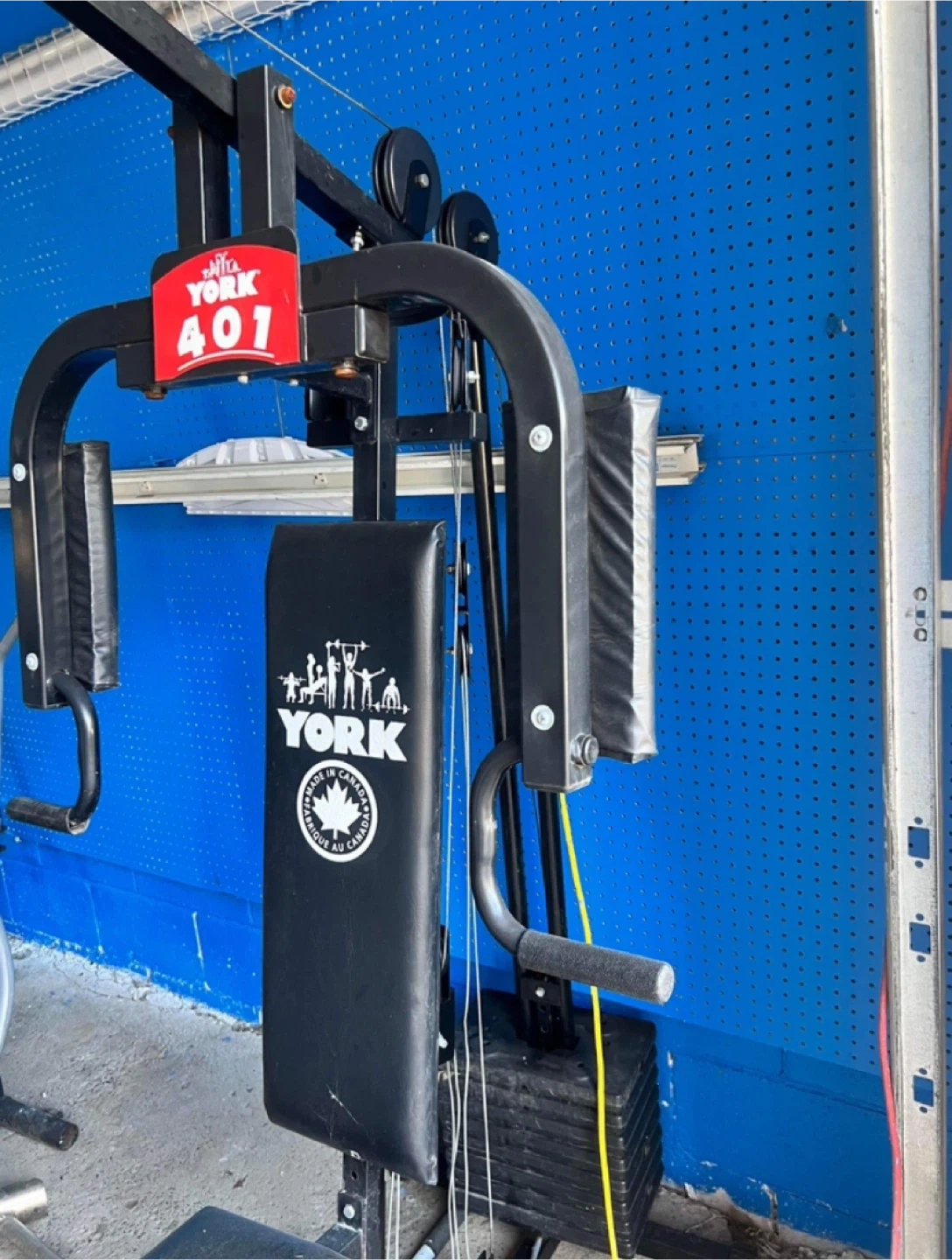 York Fitness 401 home gym. Multi-station weight machine. Used condition. While there may be a few squeaks, a little tender loving care can bring this back to a better condition.