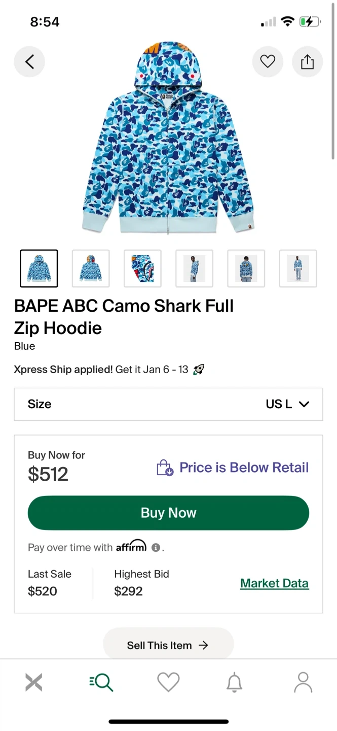 BAPE ABC Camo Shark Hoodie - Blue, Size L