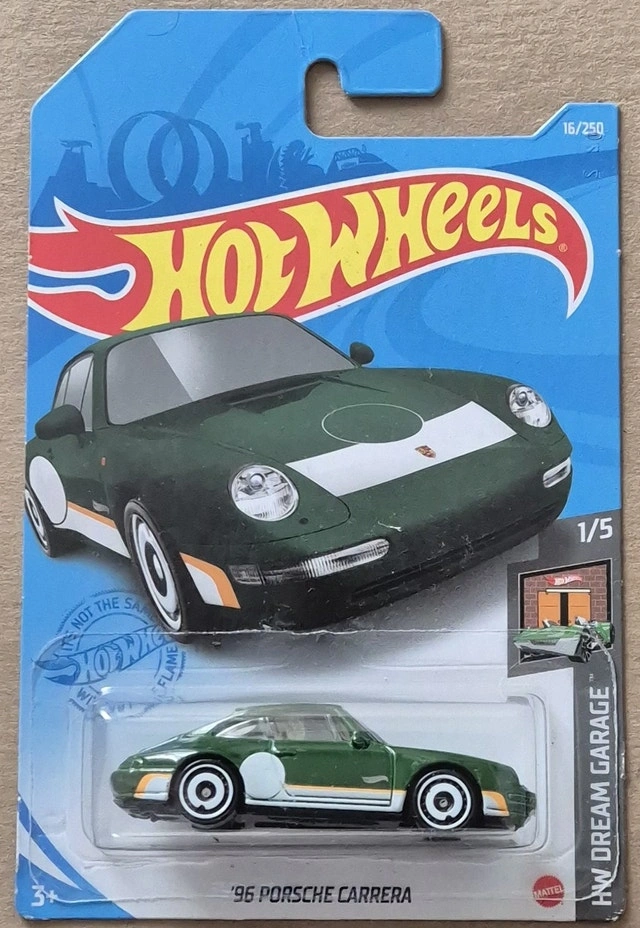 2024 Hot Wheels Mainline Series: HW: The '90s Colour: White Description: Blue, black, & yellow decals on sides, hood, & trunk, Hot Wheels logo & Magnus Walker Urban Outlaw logo on sides, "Carrera" on rear and Collection: