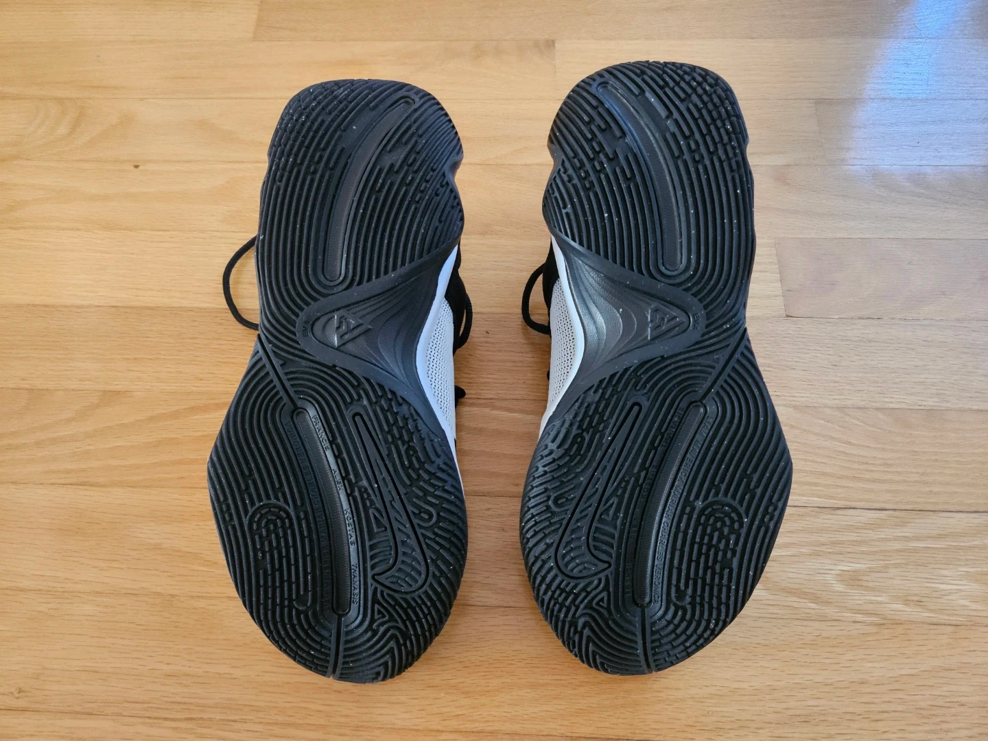 They're in great shape and ready for the court or just casual wear. The black and white colourway is super versatile. These shoes are lightweight and designed for agility, so you can move comfortably. They're also super durable