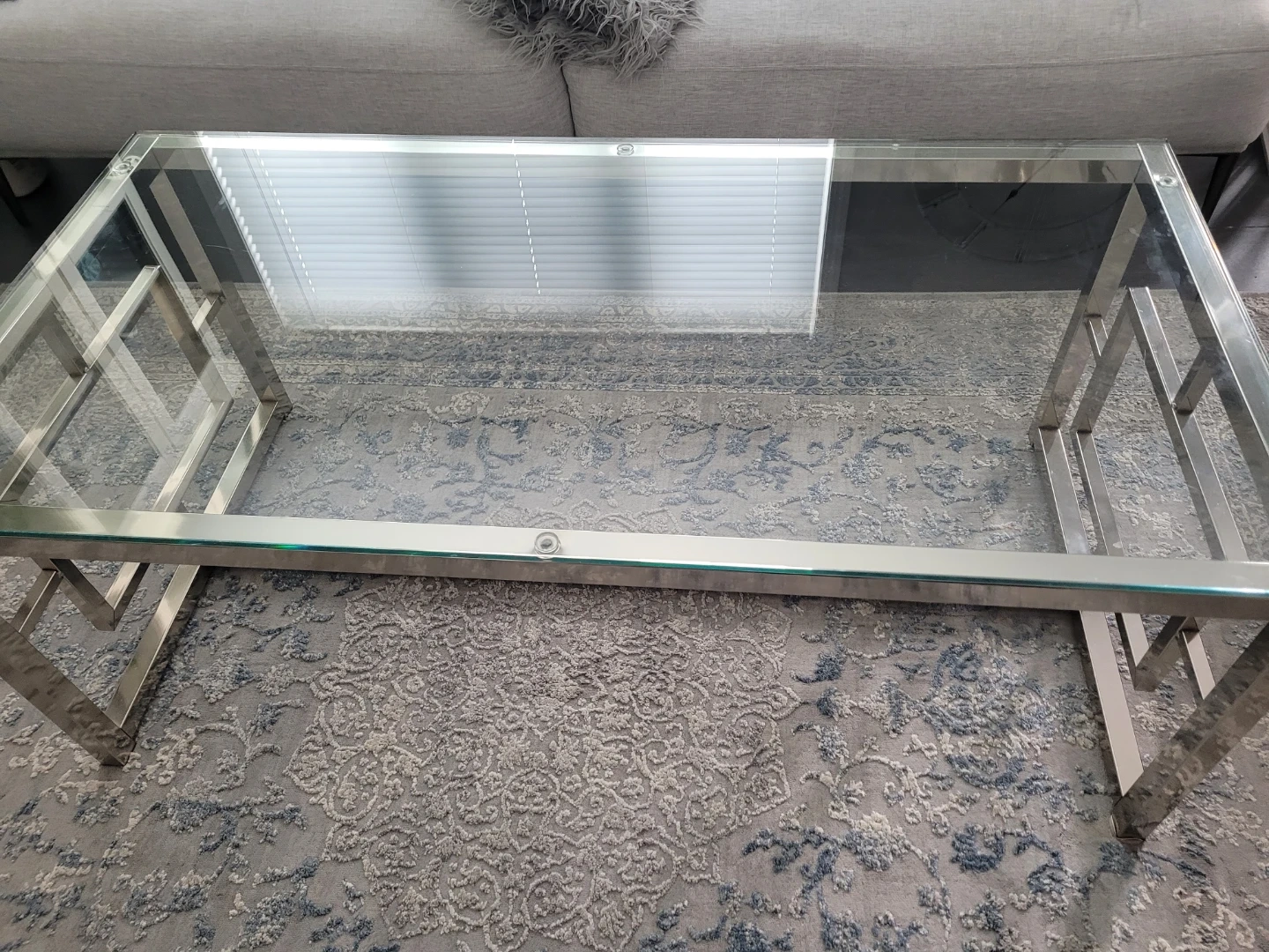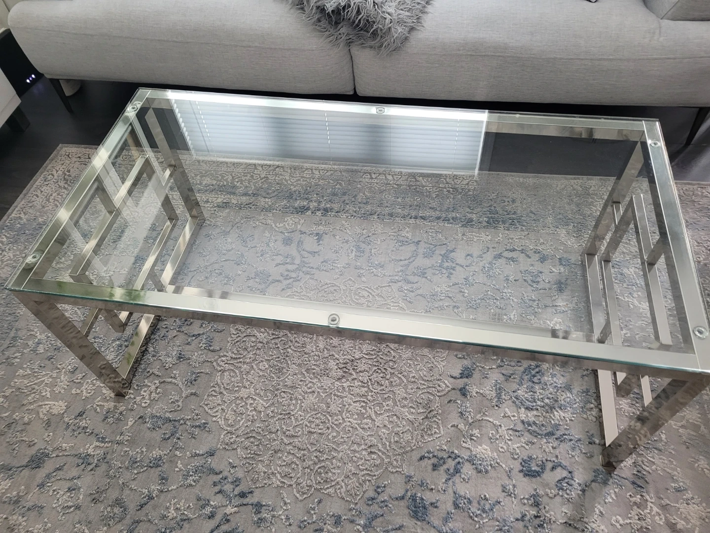 Selling a coffee table with a glass top and a chrome frame. It's in great condition and would look great in any living room! The design is modern and stylish, perfect for adding a touch of elegance to your space
