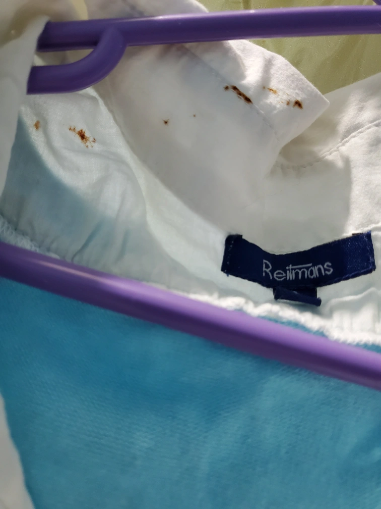5- reitman sky blue faux white collar sweater shirt. has some stains on the collar. could fit a small-medium.