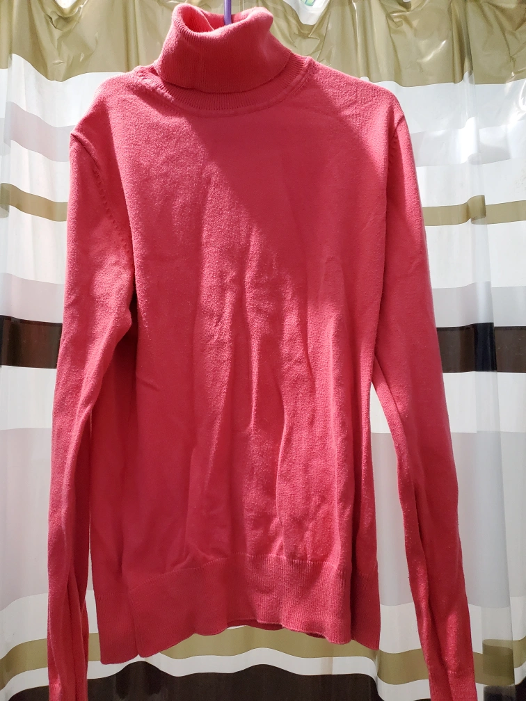 6- pink turtleneck. has some piling. could fit a small or medium.
