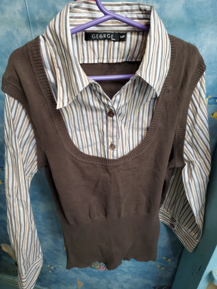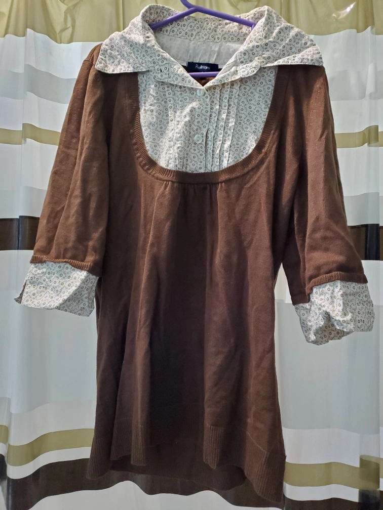 2- reitman brown faux collar sweater shirt. could fit a small to medium. good condition.